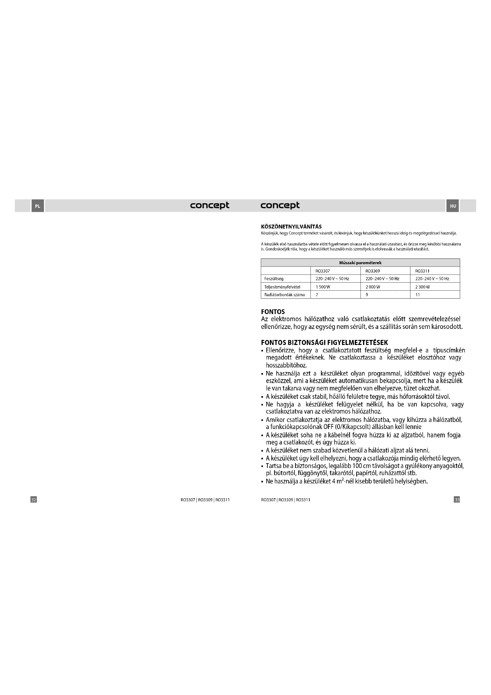 HASZNÁLATI ÚTMUTATÓ RO3307 Concept
