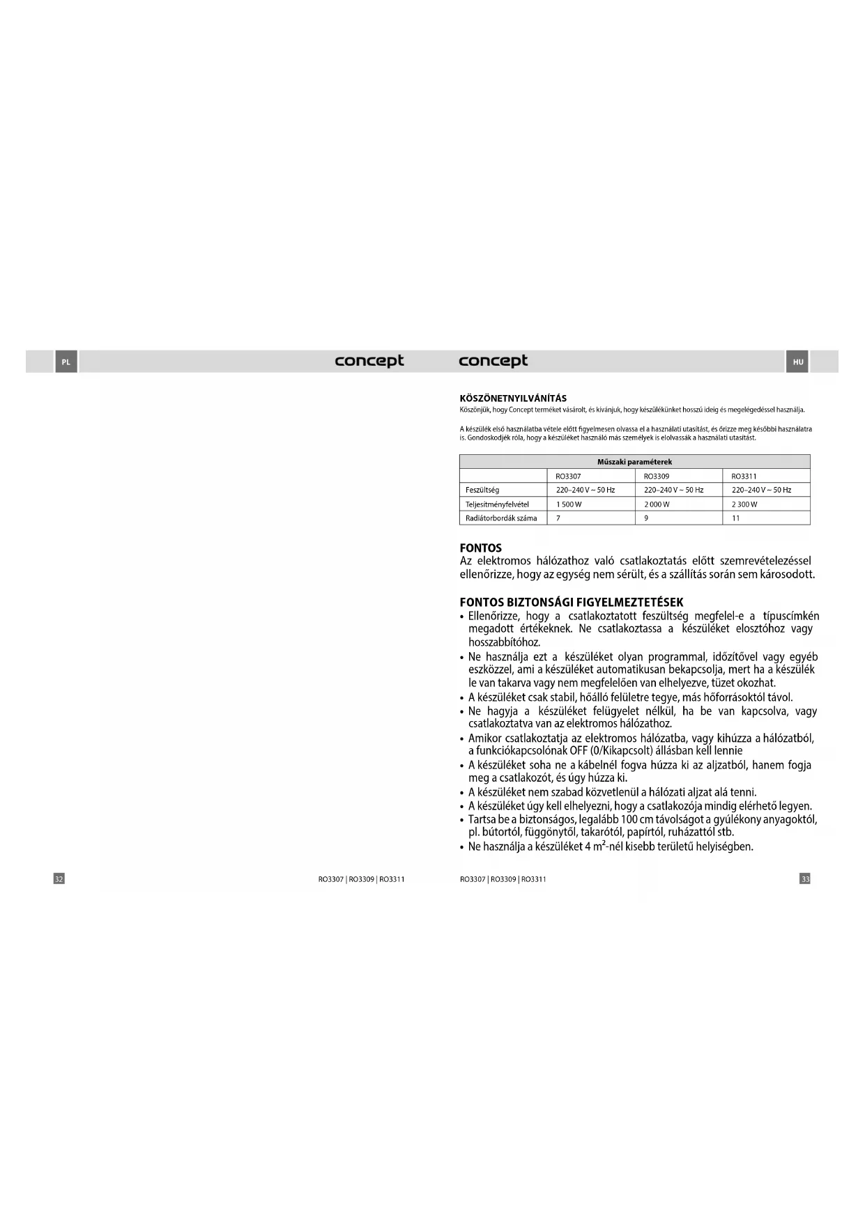 HASZNÁLATI ÚTMUTATÓ RO3311 Concept