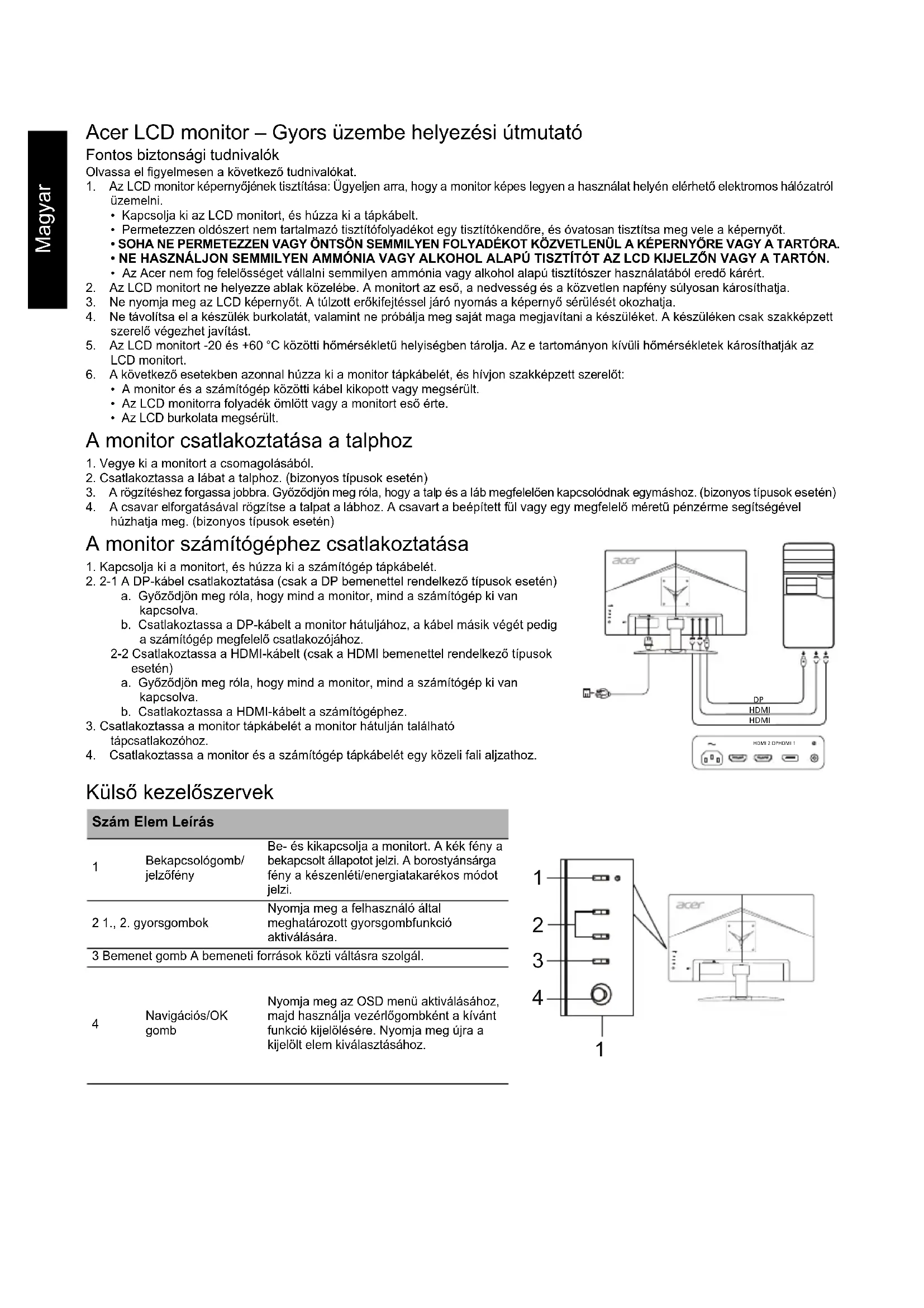 HASZNÁLATI ÚTMUTATÓ KG272U ACER