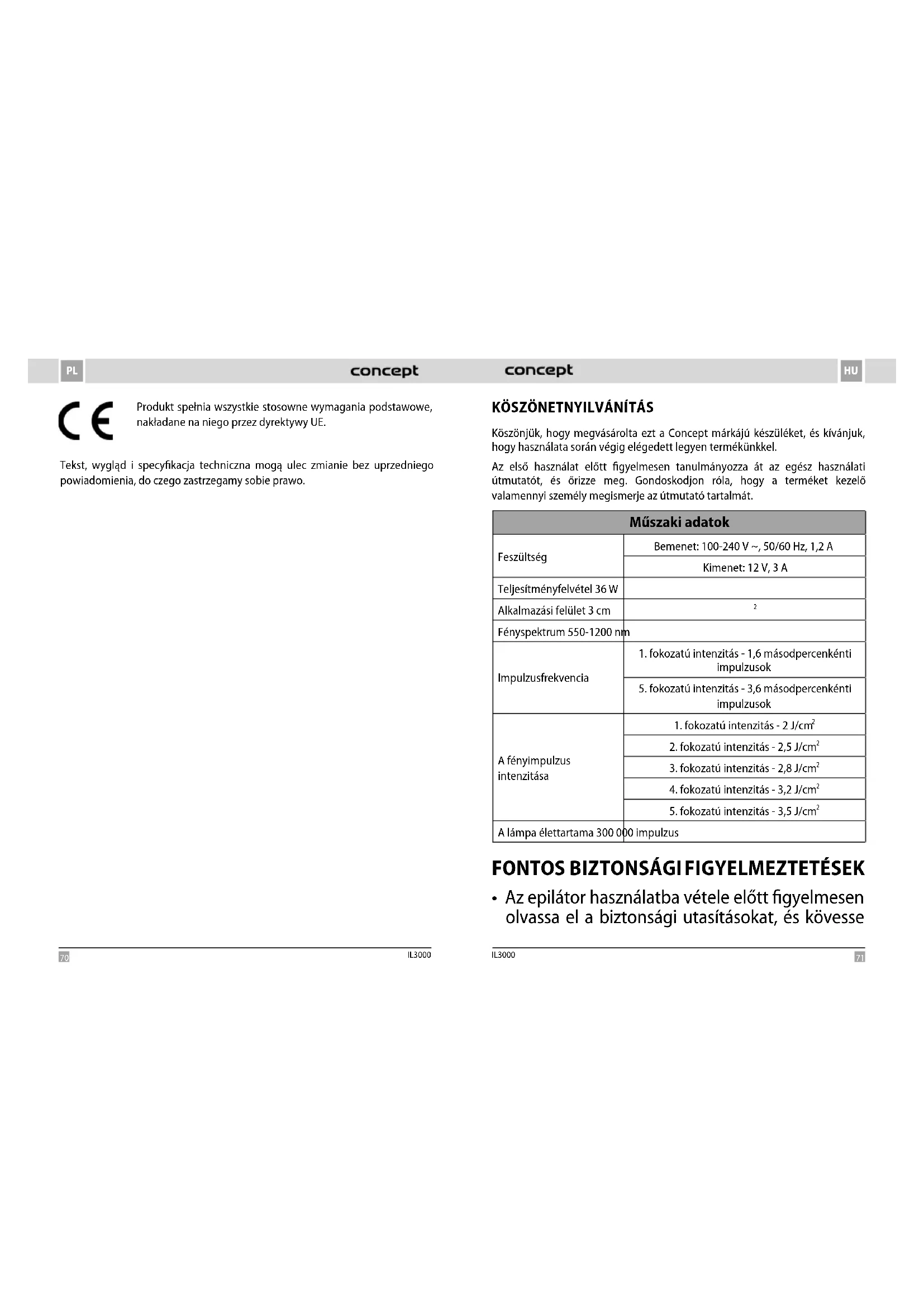 HASZNÁLATI ÚTMUTATÓ Perfect Skin IL3000 Concept