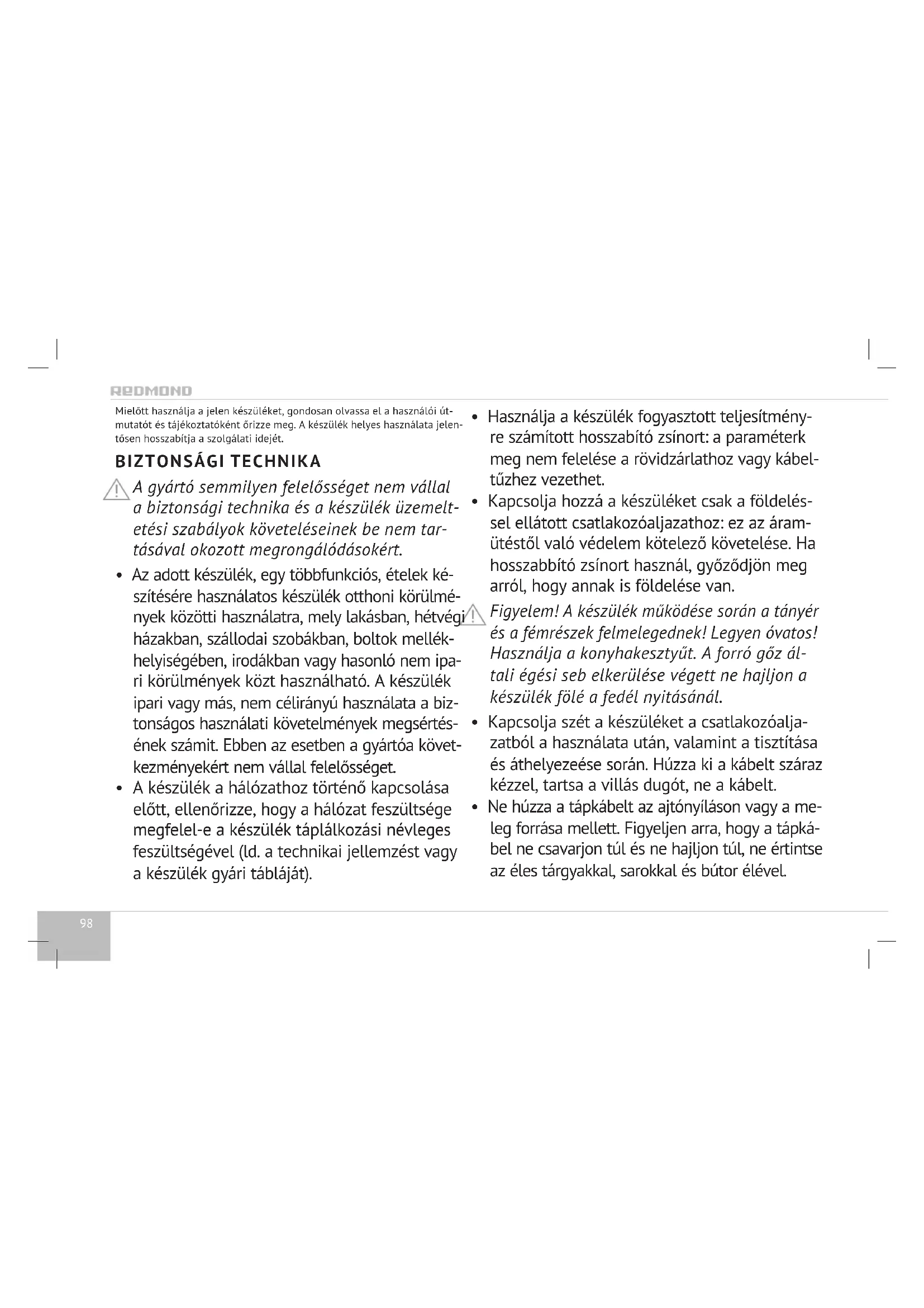 HASZNÁLATI ÚTMUTATÓ RMCM90DE Redmond