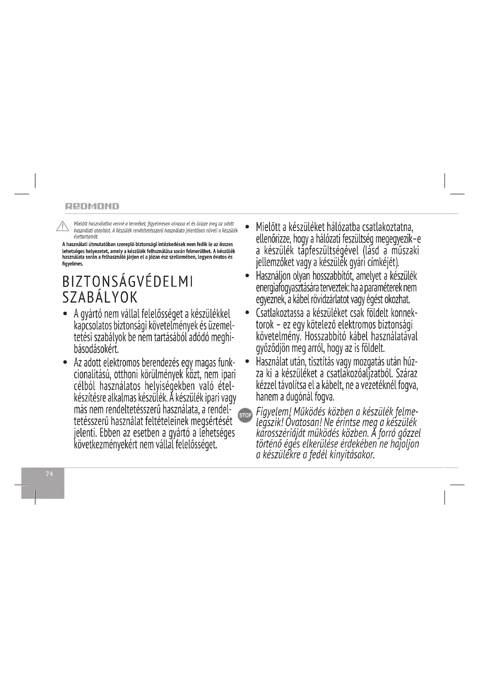 HASZNÁLATI ÚTMUTATÓ RKCBM147E Redmond