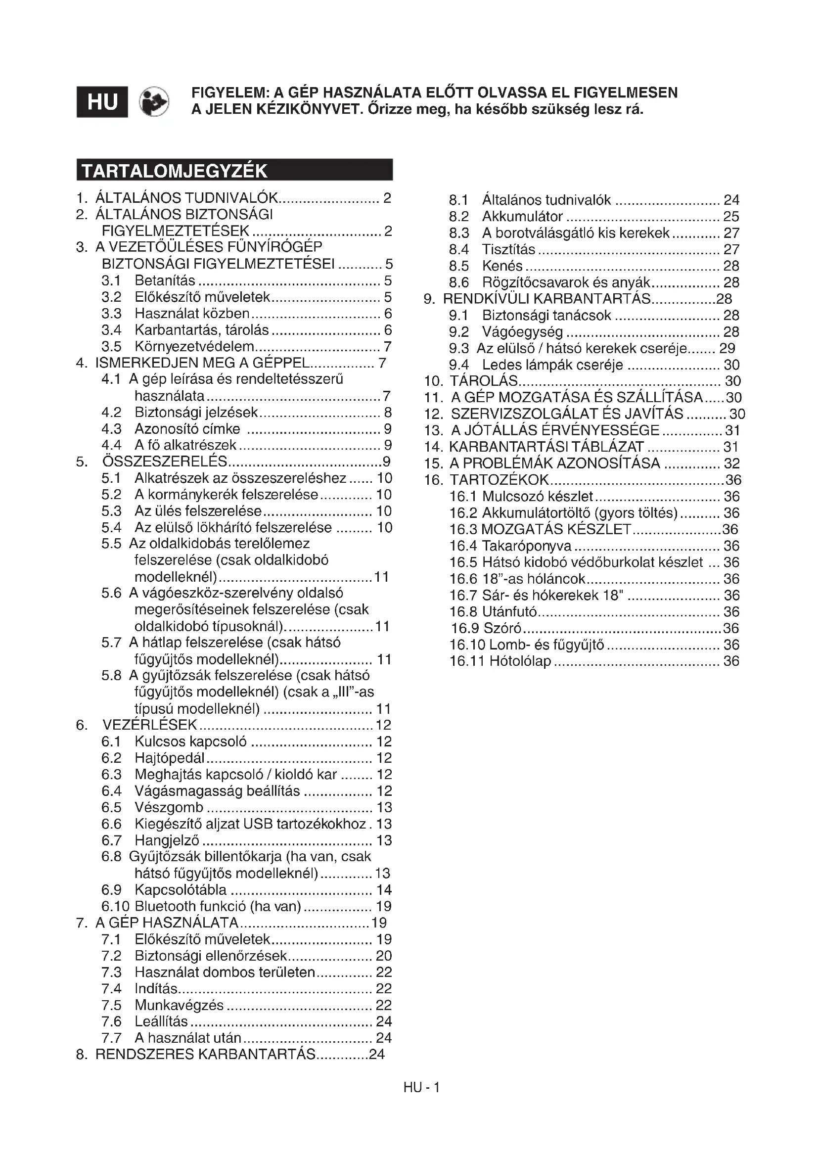 16.10 Lomb- és fűgyűjtő ............................ 36