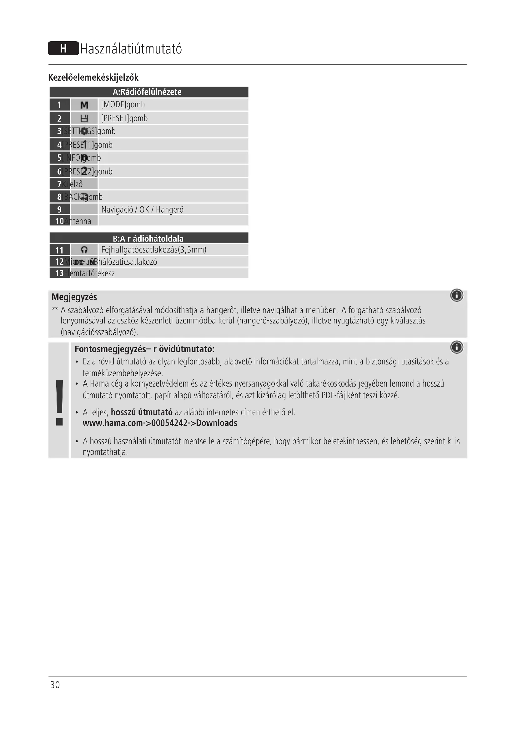 - Ateljes, hosszú útmutató az alábbi internetes címen érthető el: www.hama.com -> 00054242 -> Downloads