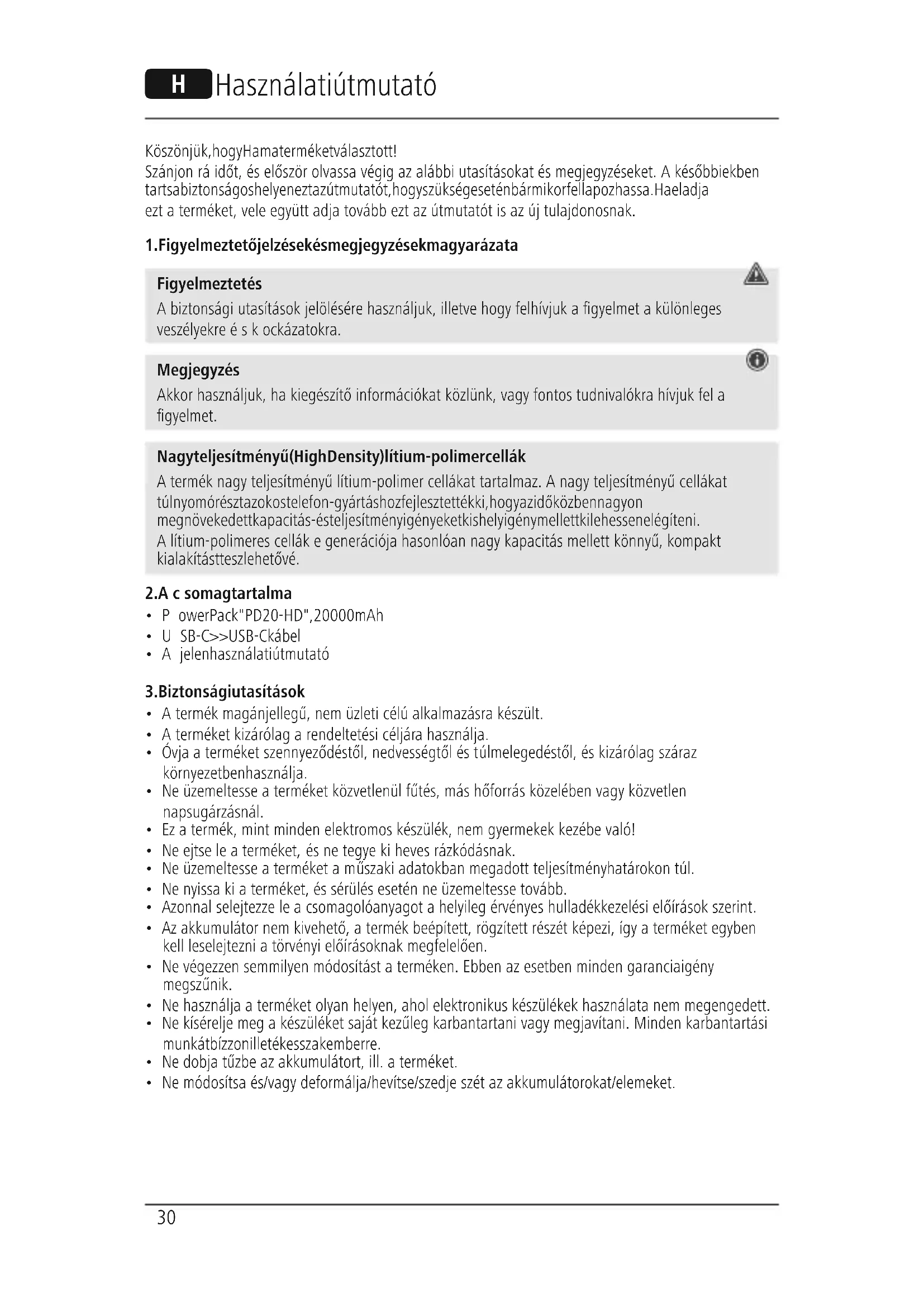 PD20HD - Hordozható akkumulátor HAMA - Ingyenes használati útmutató