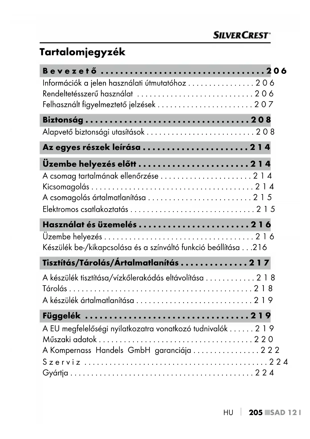 HASZNÁLATI ÚTMUTATÓ SAD 12 E4 SILVERCREST