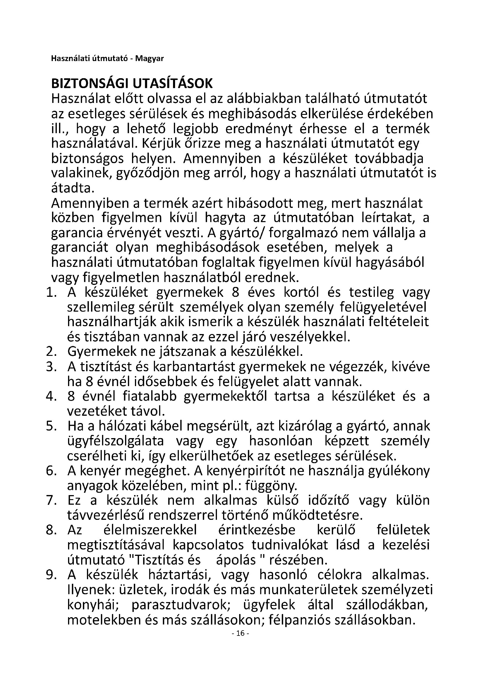 9. A készülék háztartási, vagy hasonló célokra alkalmas.