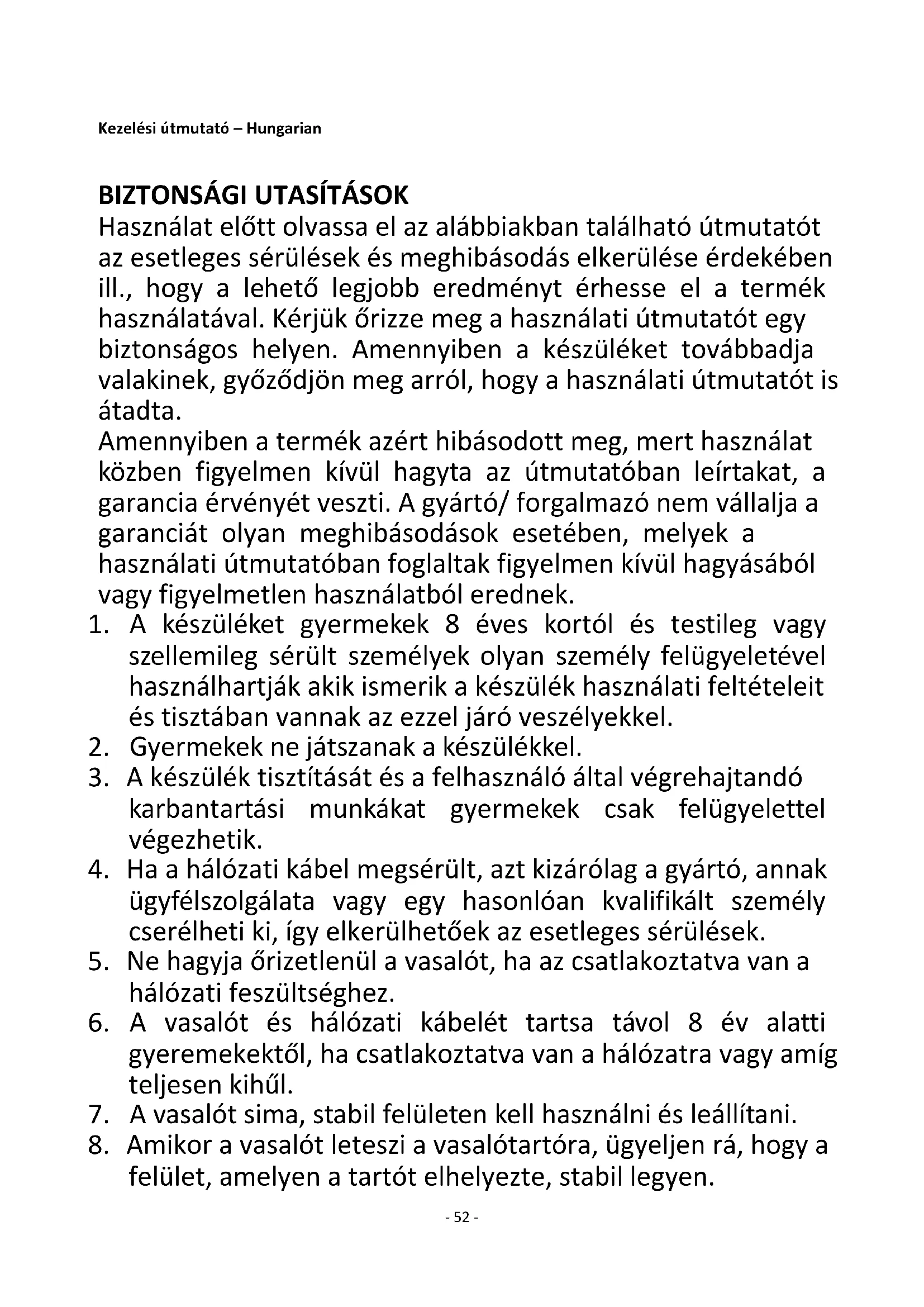 32. A kábel ne érintkezzen a vasalótalppal, ha az forró.