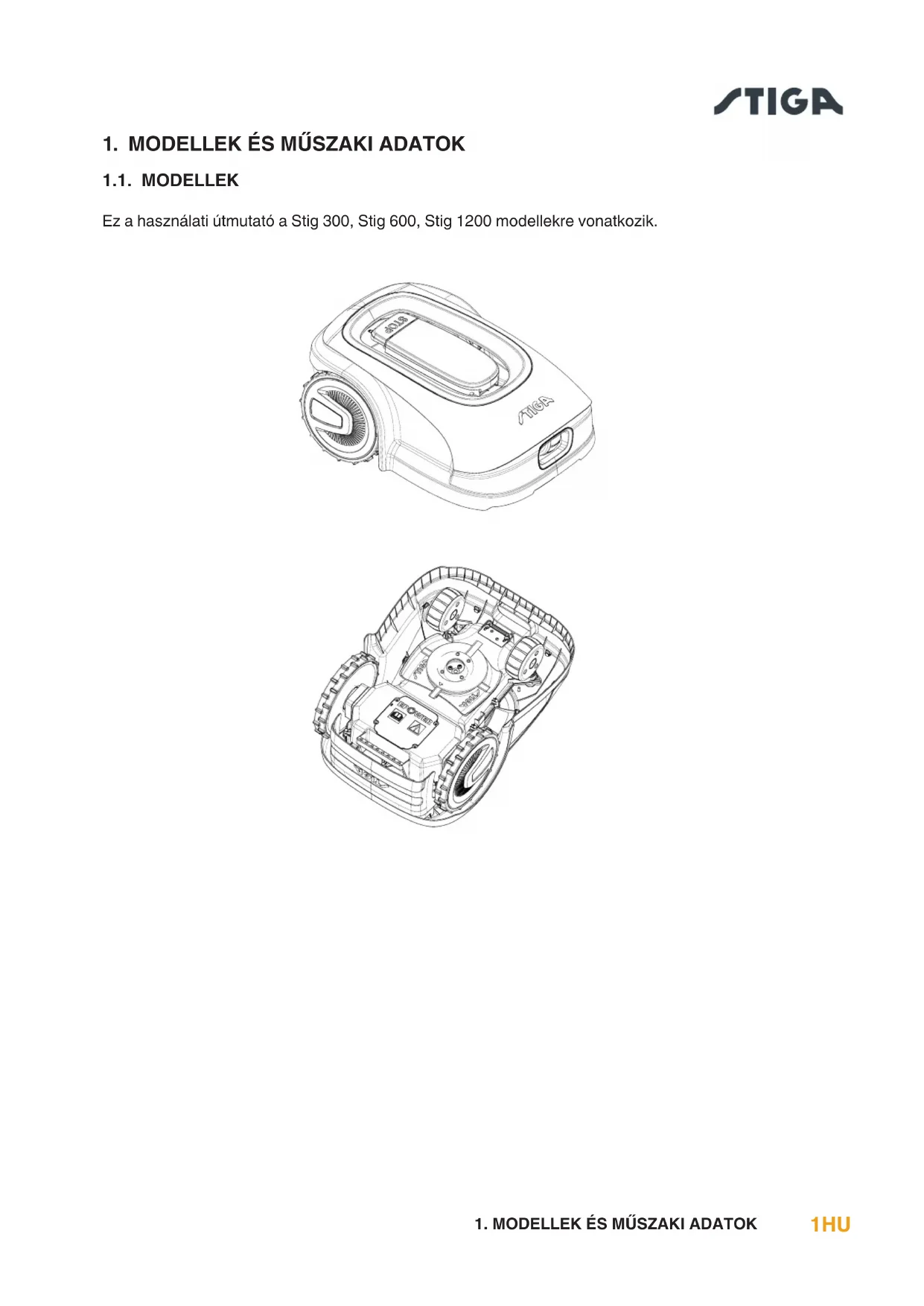 1.1. MODELLEK Ez a használati útmutató a Stig 300, Stig 600, Stig 1200 modellekre vonatkozik.2 HU