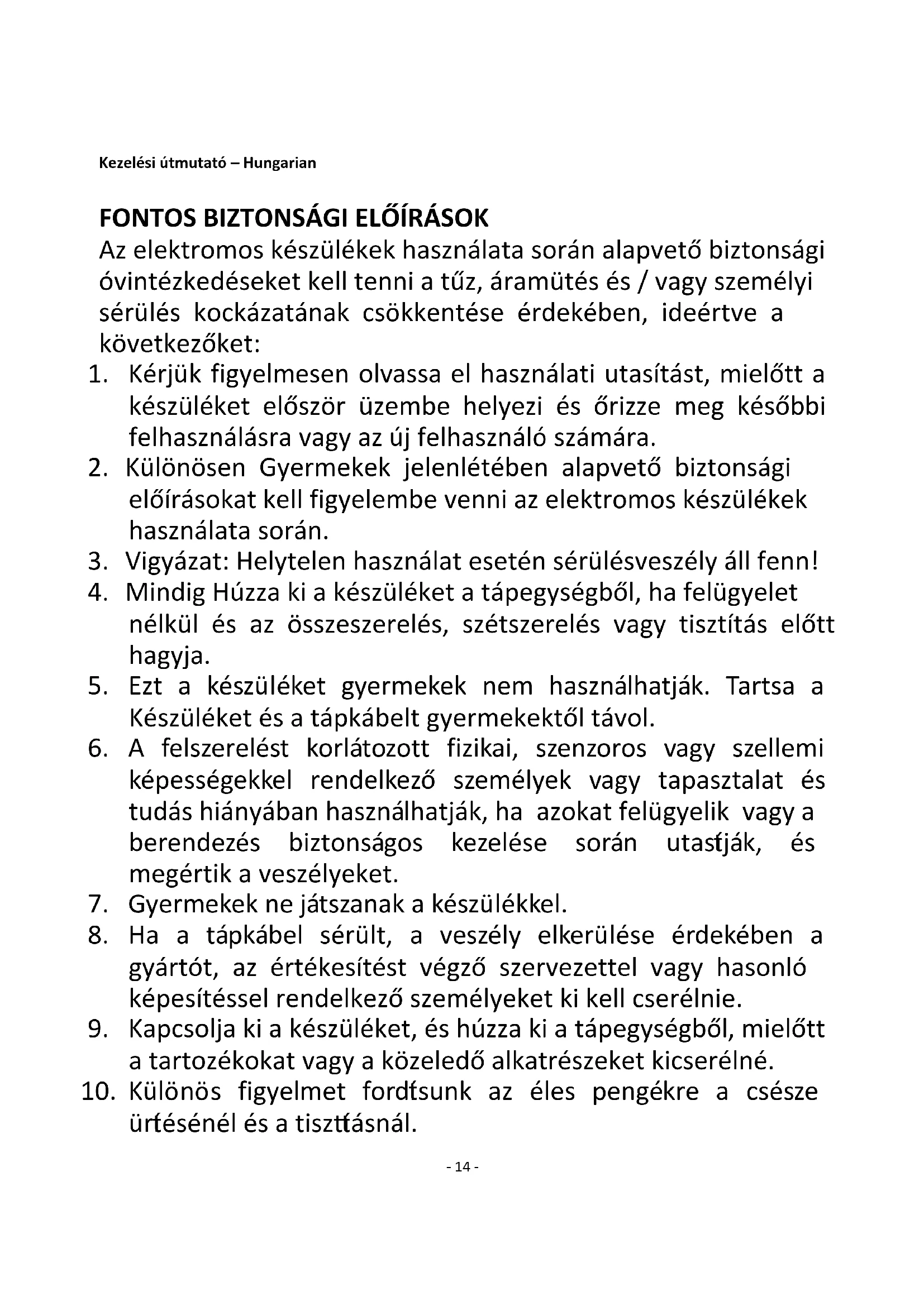 2. Különösen Gyermekek jelenlétében alapvető biztonsági