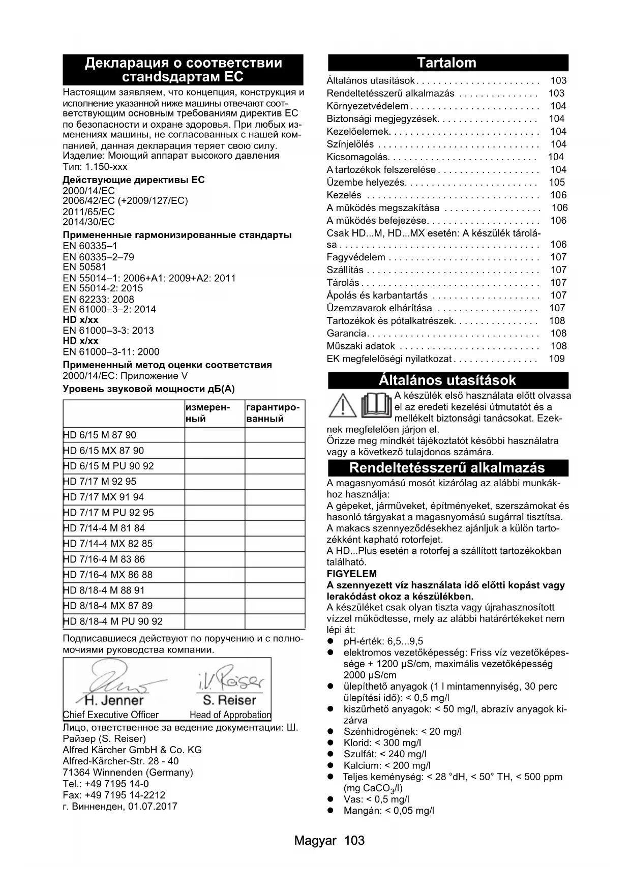 - HD 6/15 M 87 90 HD 6/15 MX 87 90 HD 6/15 M PU 90 92 HD 7/17 M 92 95 HD 7/17 MX 91 94 HD 7/17 M PU 92 95 HD 7/14-4 M 81 84 HD 7/14-4 MX 82 85 HD 7/16-4 M 83 86 HD 7/16-4 MX 86 88 HD 8/18-4 M 88 91 HD 8/18-4 MX 87 89 HD 8/18-4 M PU 90 92 Chief Executive Officer Head of Approbation Általános utasítások p. 103