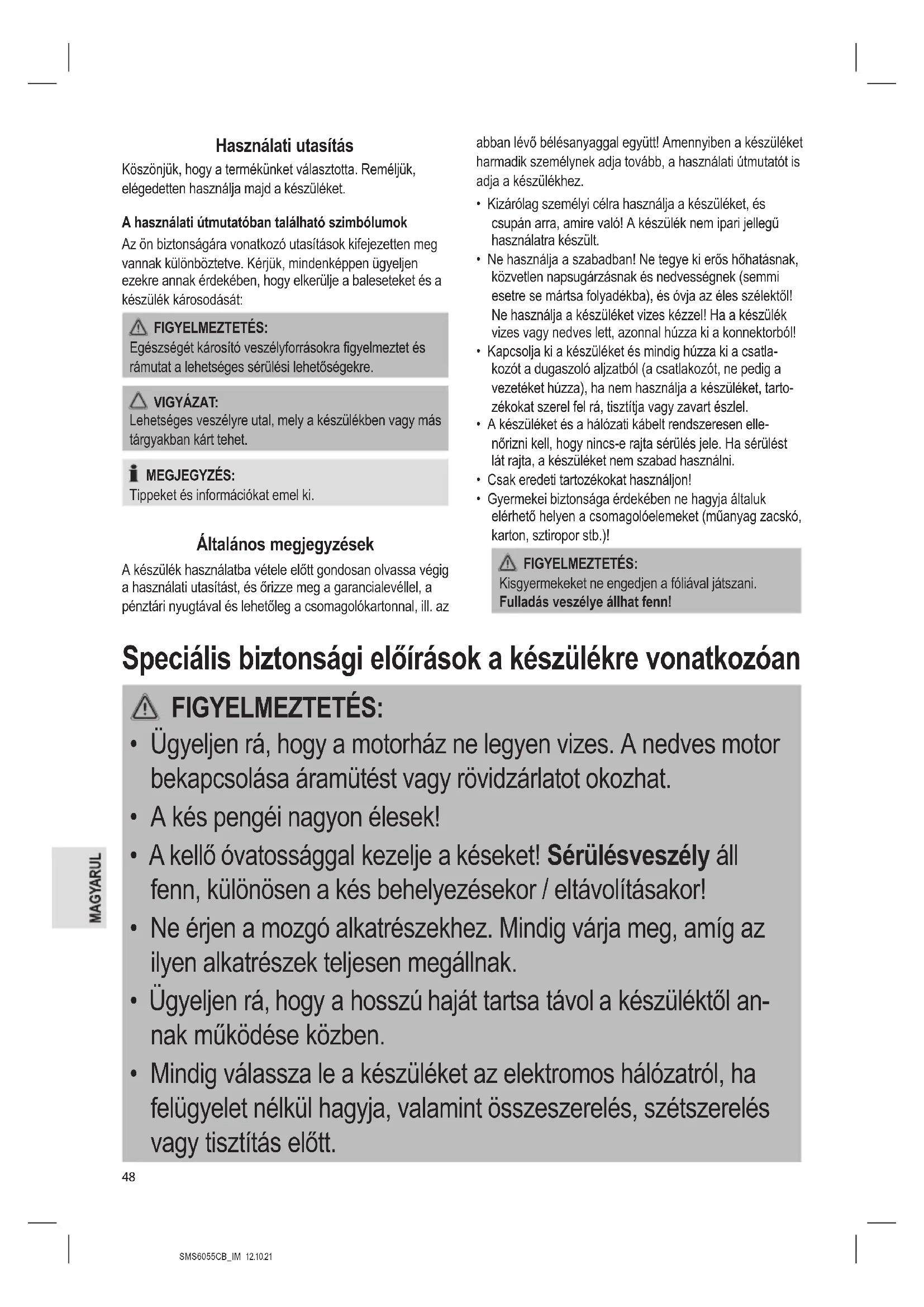 - Mindig gyerekektől távol a tárolja a készüléket, egy jól szellőztetett helyiségben.SMS6055CB_IM 12.10.21