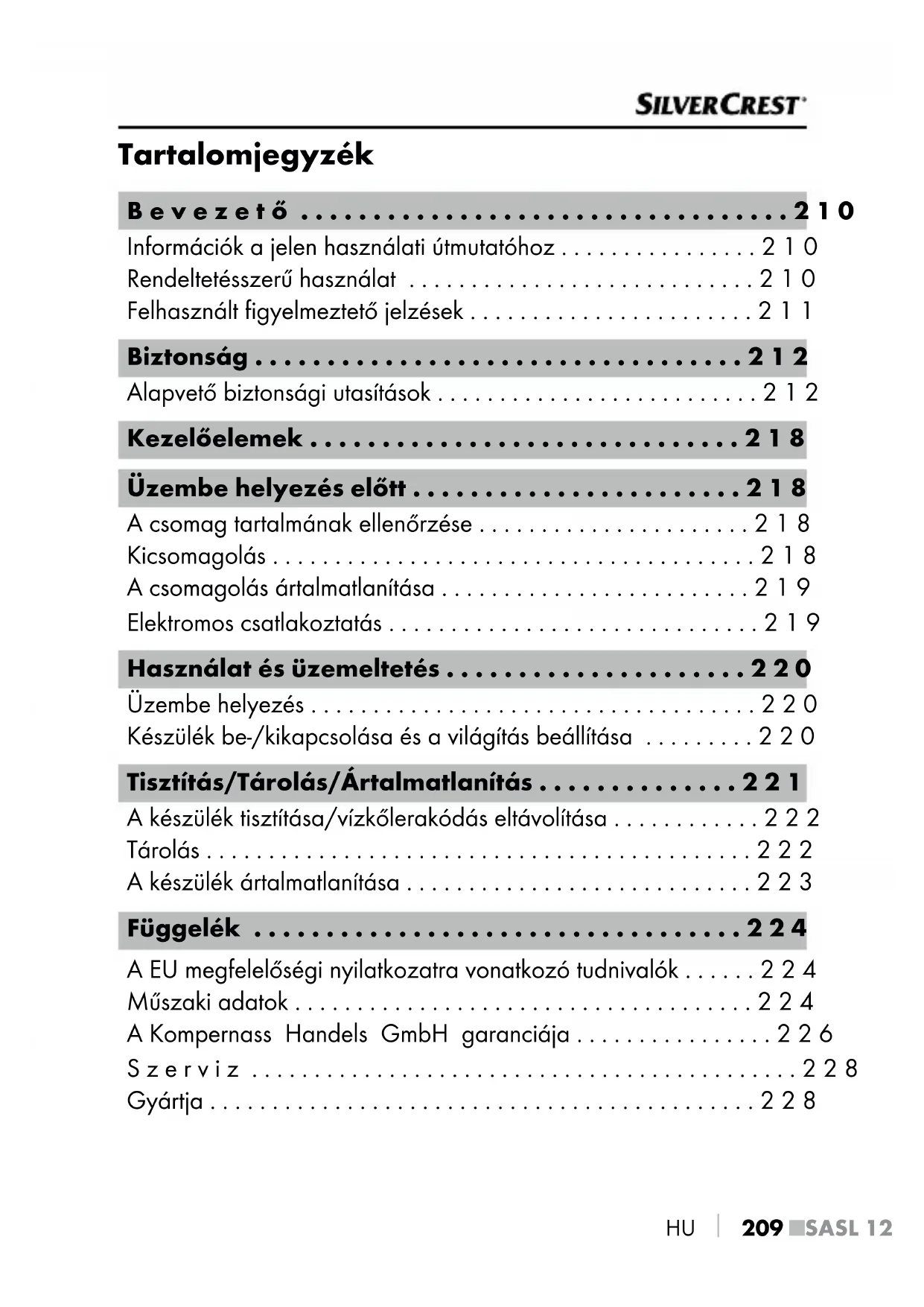 HASZNÁLATI ÚTMUTATÓ SASL 12 A1 SILVERCREST