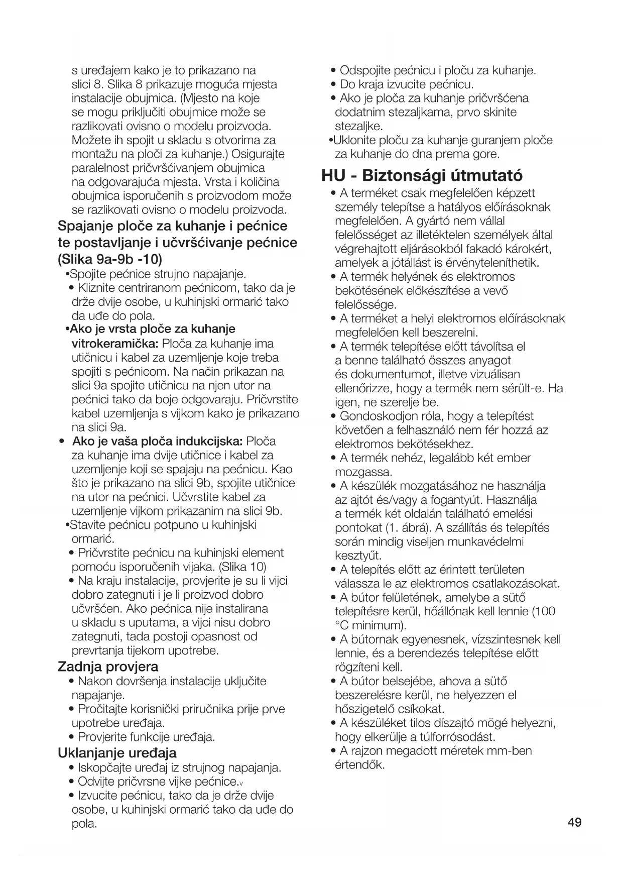 - Gondoskodjon róla, hogy a telepítést követően a felhasználó nem fér hozzá az elektromos bekötésekhez.