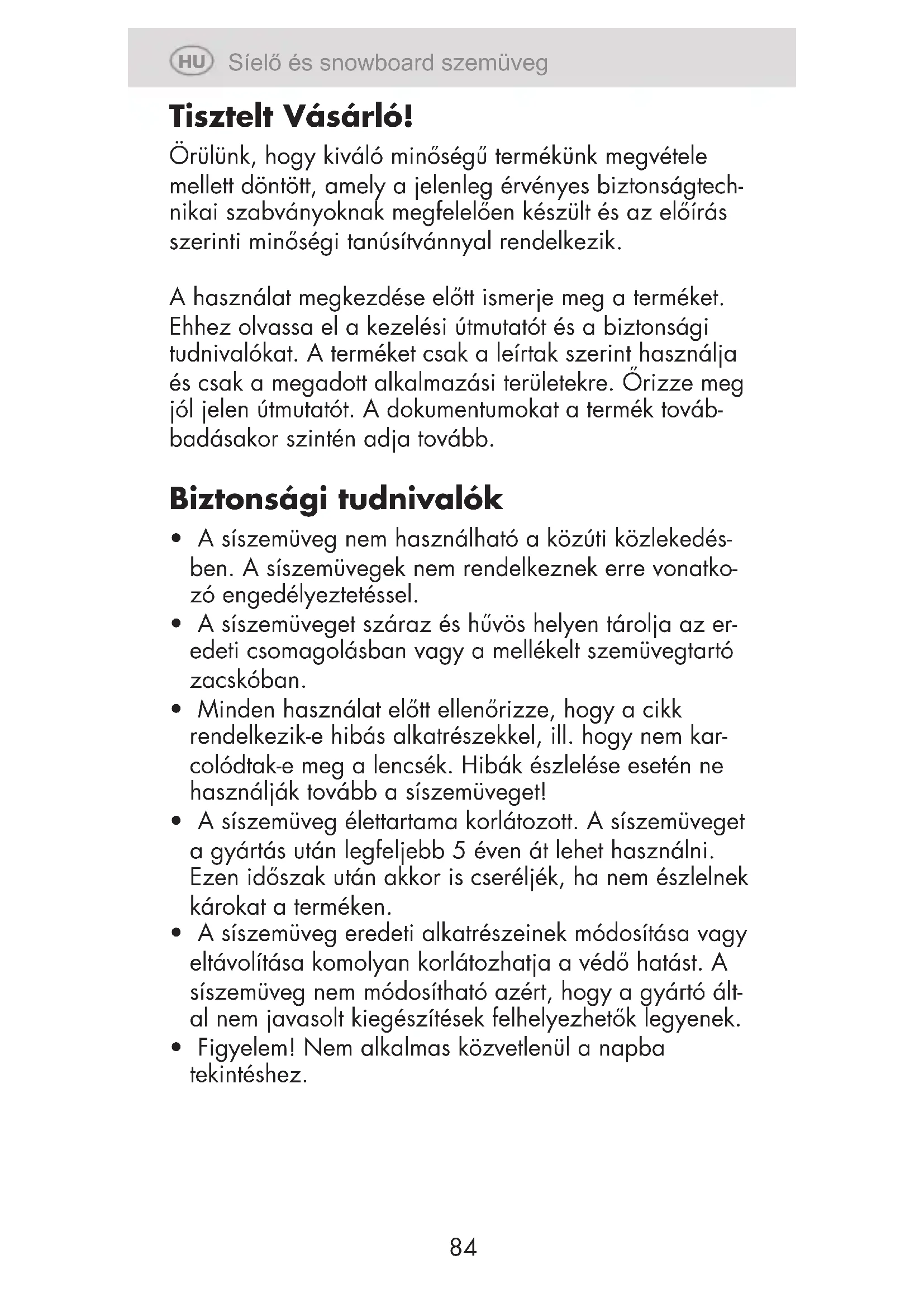 - A siszemüveg élettartama korlátozott. A siszemüveget a gyártás után legfeljebb 5 éven át lehet használni. Ezen idöszak után akkor is cseréljék, ha nem észlnek károkat a terméken.