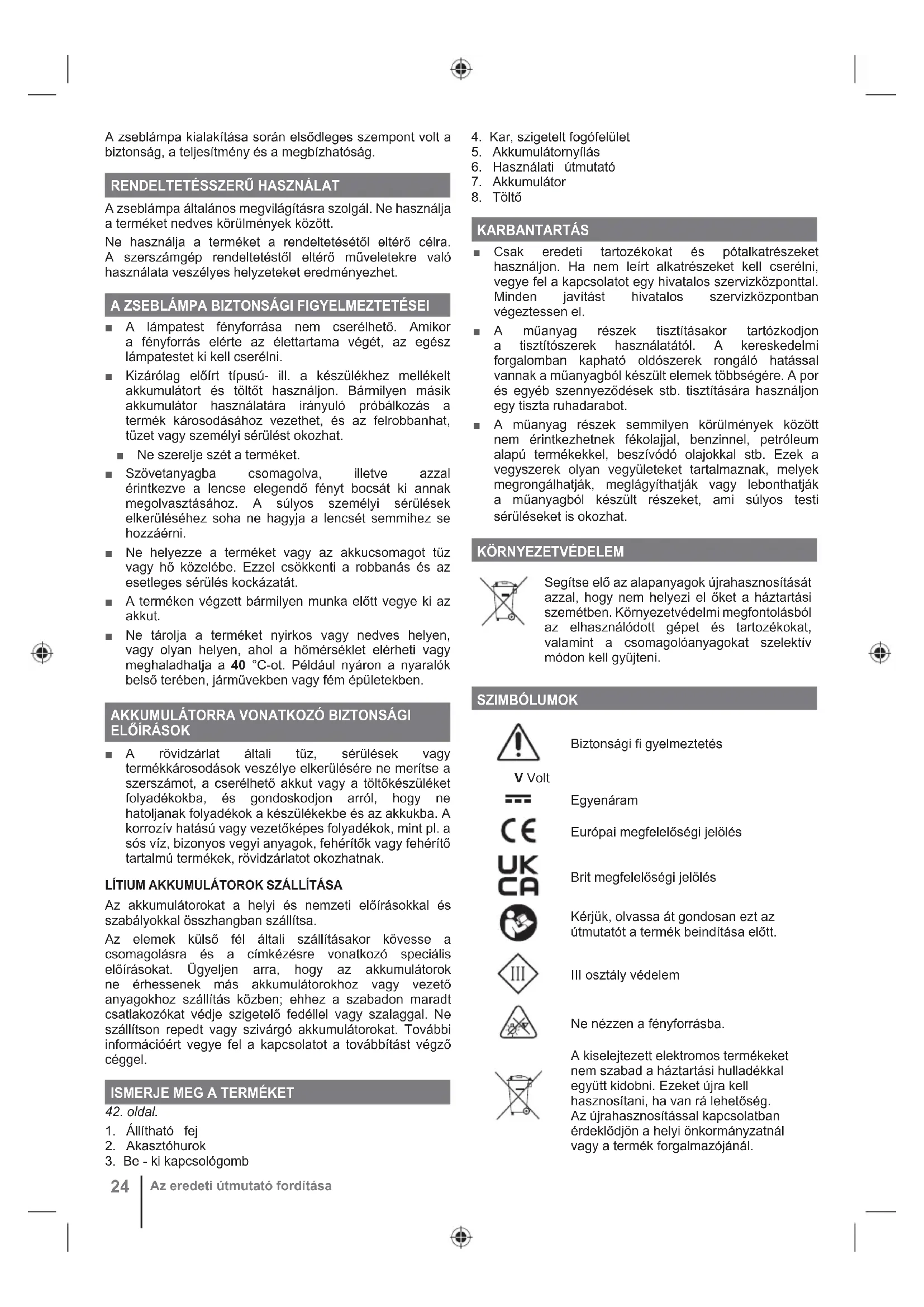 Segítse elő az alapanyagok újrahasznosítását azzal, hogy nem helyezi el őket a háztartási szemétben. Környezetvédelmi megfontolásból az elhasználódott gépet és tartozékokat, valamint a csomagolóanyagokat szelektív módon kell gyűjteni. SZIMBÓLUMOK Biztonsági fi gyelmeztetés V Volt Egyenáram Európai megfelelőségi jelölés Brit megfelelőségi jelölés Kérjük, olvassa át gondosan ezt az útmutatót a termék beindítása előtt. III osztály védelem Ne nézzen a fényforrásba. A kiselejtezett elektromos termékeket nem szabad a háztartási hulladékkal együtt kidobni. Ezeket újra kell hasznosítani, ha van rá lehetőség. Az újrahasznosítással kapcsolatban érdeklődjön a helyi önkormányzatnál vagy a termék forgalmazójánál.
