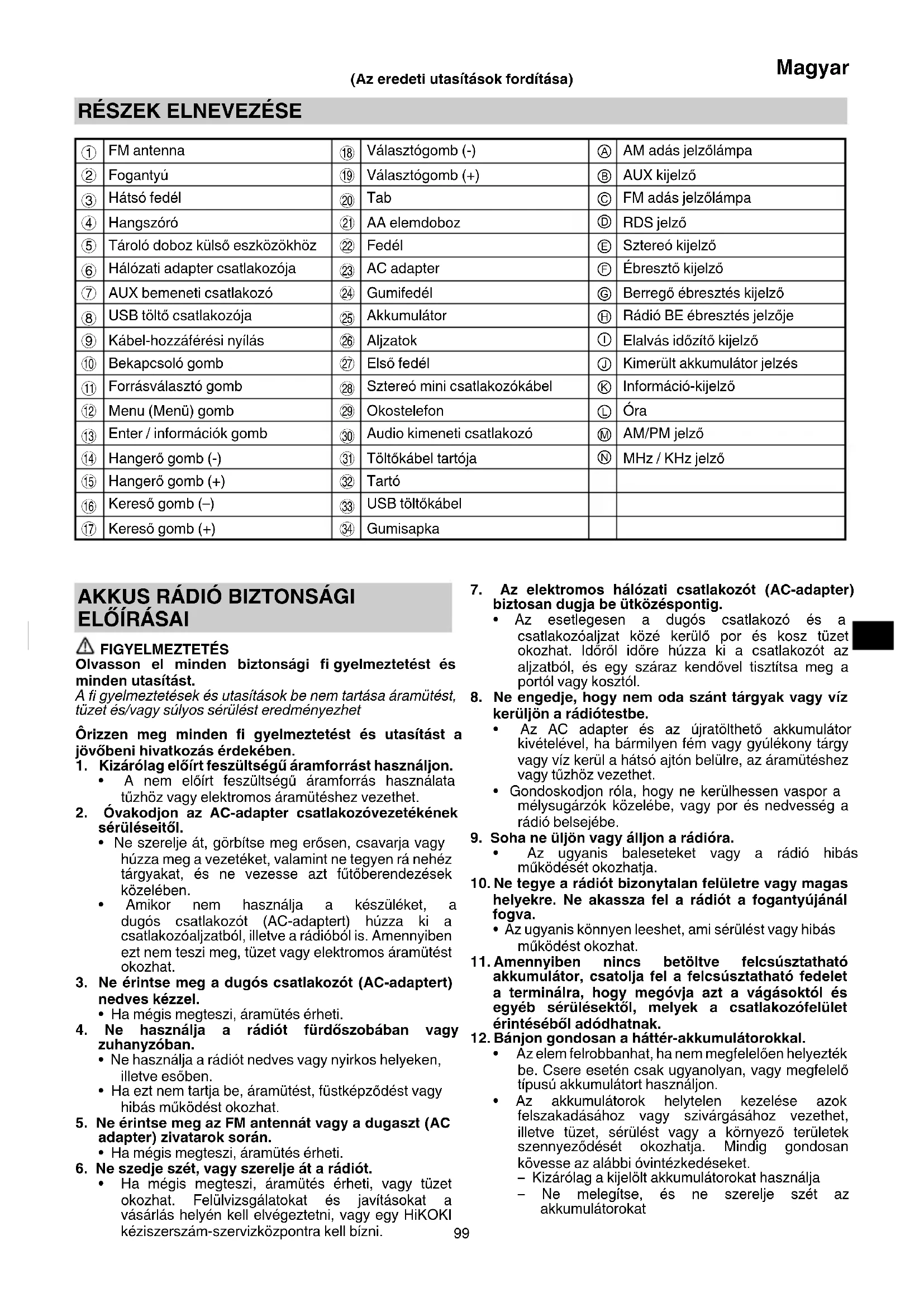 17. A rádiót képesített személlyel javítassa, csak