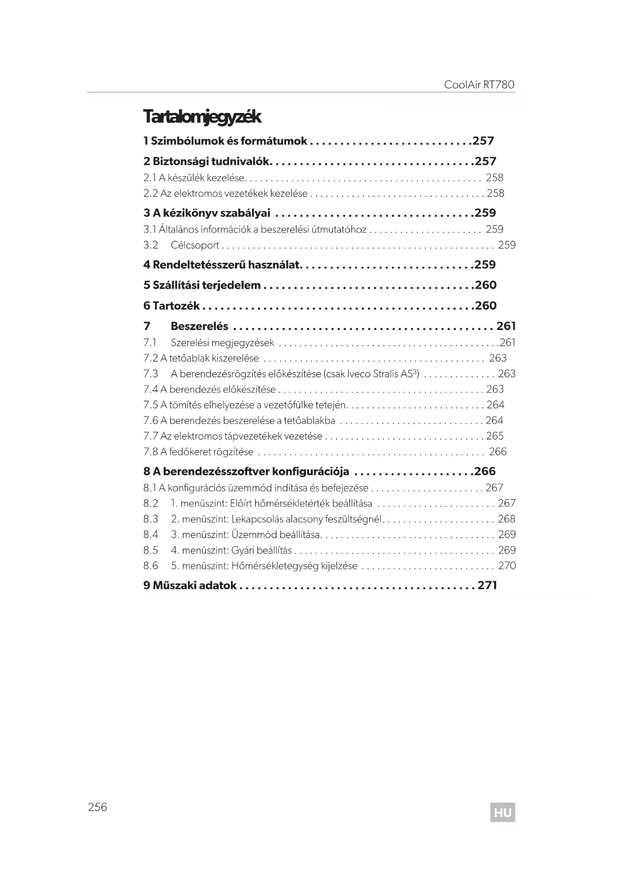 Tartalomjegyzék 1 Szimbólumok és formátumok . . . . . . . . . . . . . . . . . . . . . . . . . . .257 2 Biztonsági tudnivalók. . . . . . . . . . . . . . . . . . . . . . . . . . . . . . . . . .257