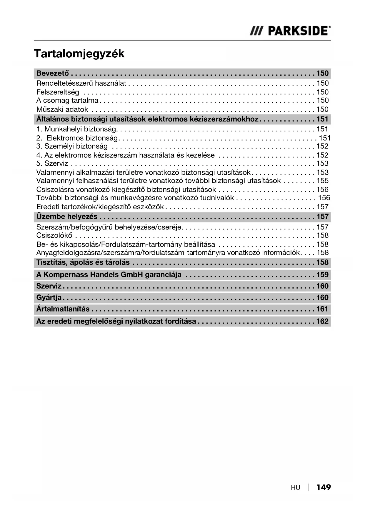 - Az eredeti megfelelőségi nyilatkozat fordítása IB_458746_PGS500C2_LB8.indb 149IB_458746_PGS500C2_LB8.indb 149 18.07.2024 13:46:5418.07.2024 13:46:54150 p. 162