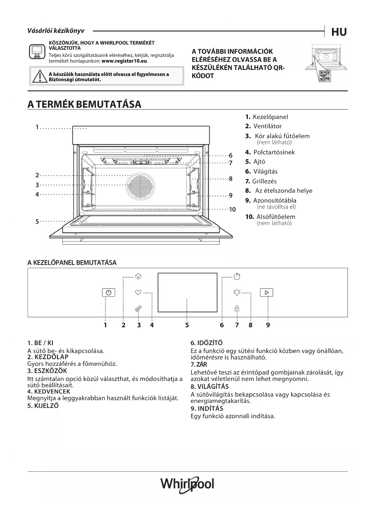 WCW9O7PHTSB - Sütő WHIRLPOOL - Ingyenes használati útmutató