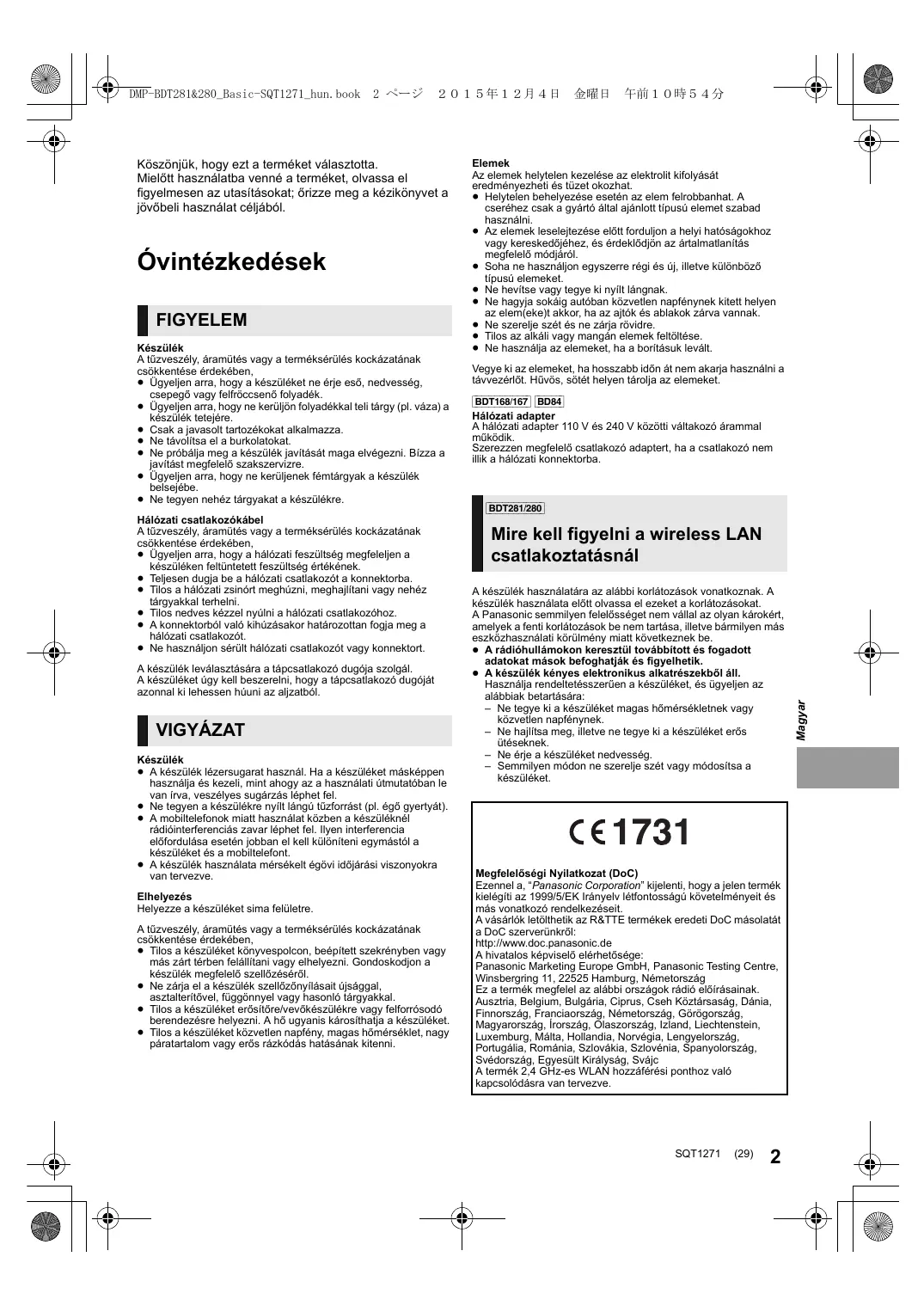 Téléchargez la notice de votre Blu-ray lejátszó au format PDF gratuitement ! Retrouvez votre notice DMP-BDT168EG - PANASONIC et reprennez votre appareil électronique en main. Sur cette page sont publiés tous les documents nécessaires à l'utilisation de votre appareil DMP-BDT168EG de la marque PANASONIC.