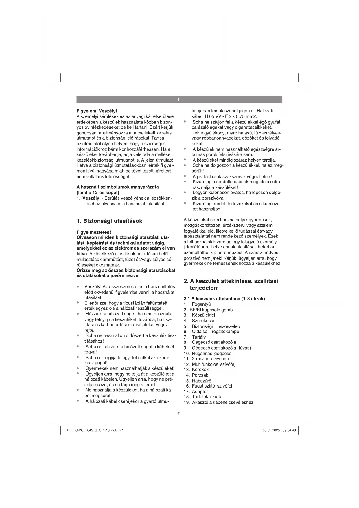 Minden egyes használat után tisztítsa meg a készüléket. Anl_TC-VC_2045_S_SPK13.indb 73Anl_TC-VC_2045_S_SPK13.indb 73 03.02.2025 09:54:4803.02.2025 09:54:48H