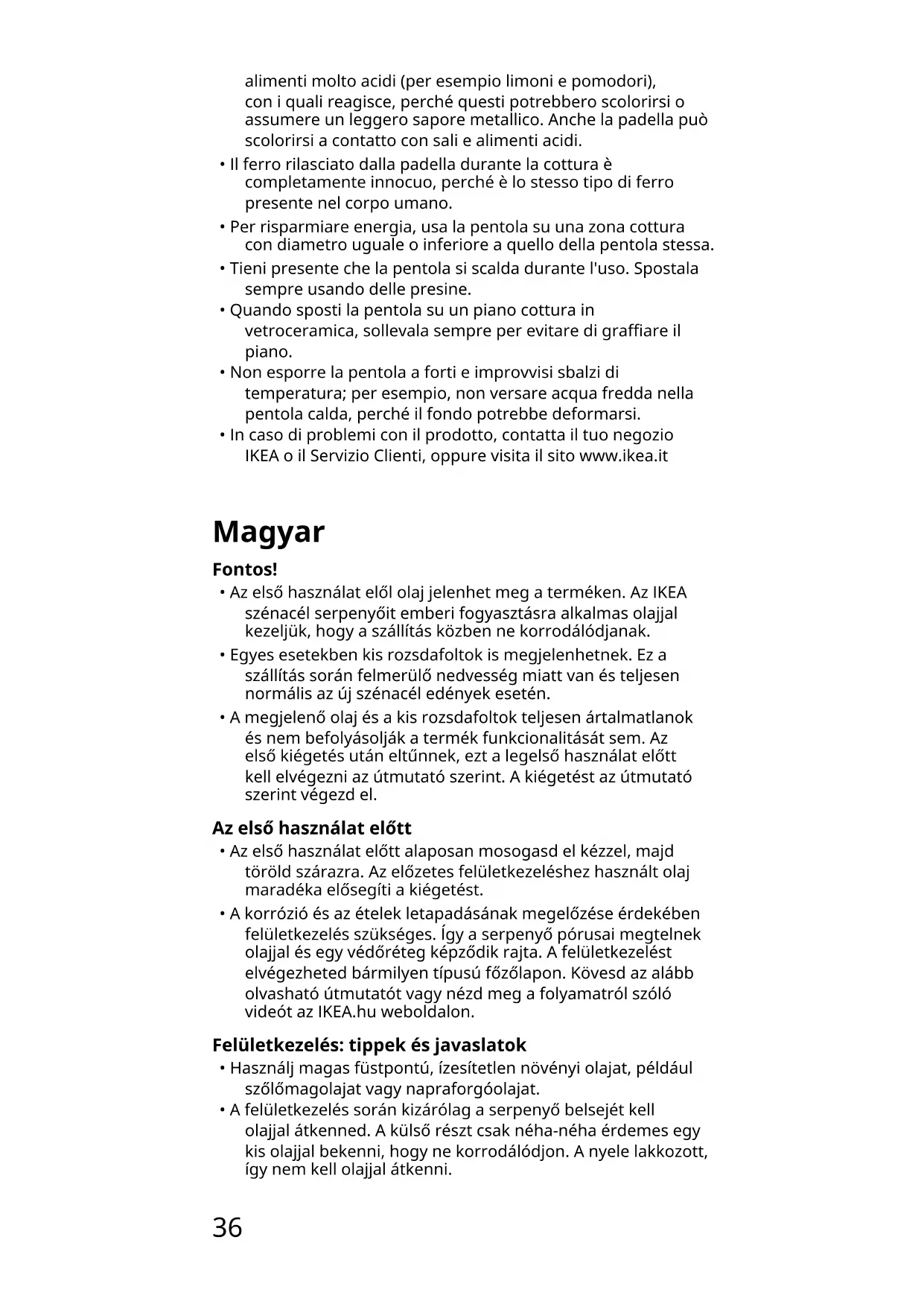 - Az első használat elől olaj jelenhet meg a terméken. Az IKEA szénacél serpenyőit emberi fogyasztásra alkalmas olajjal kezeljük, hogy a szállítás közben ne korrodálódjanak.