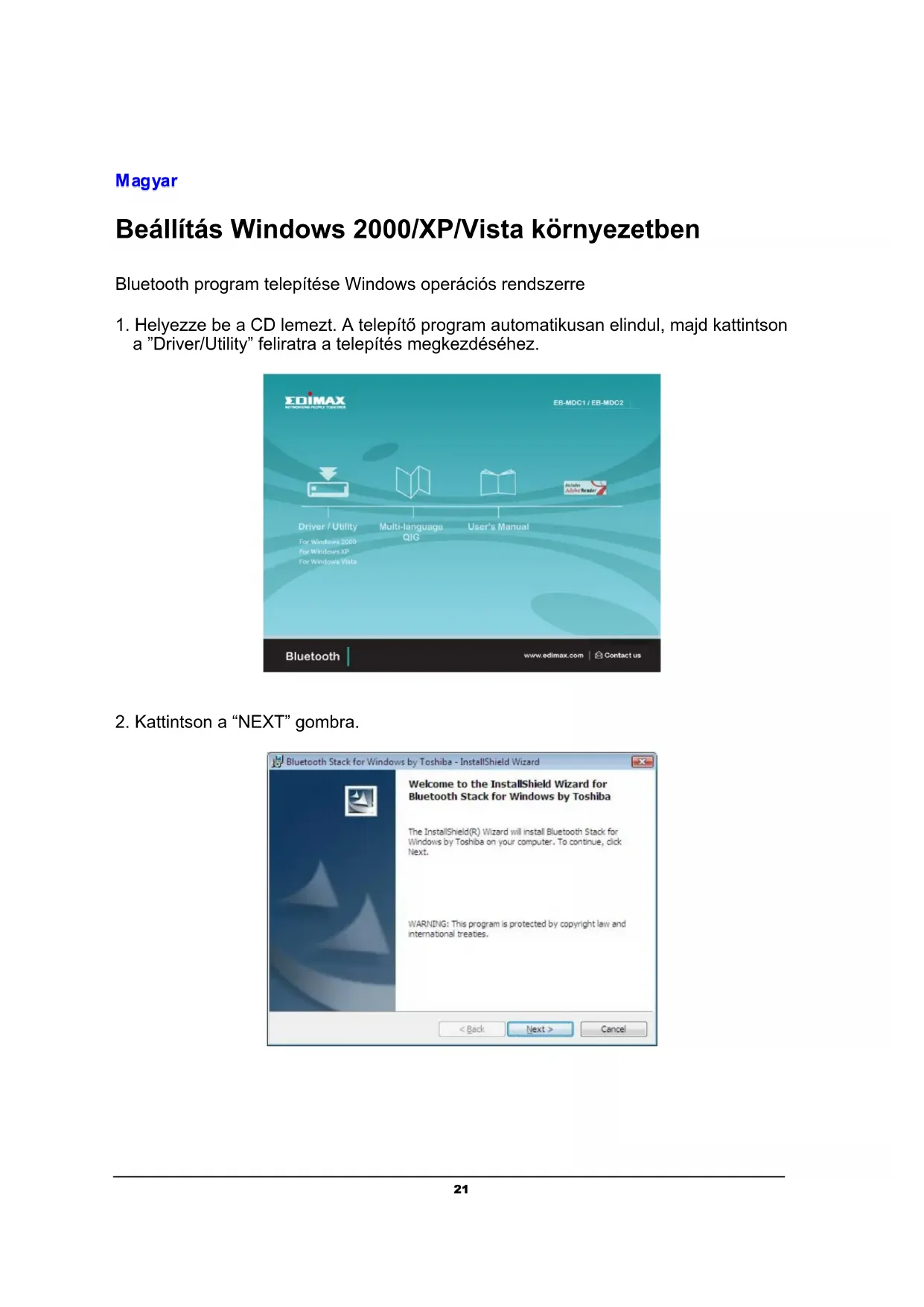 Beállitas Windows 2000/XP/Vista környezetben