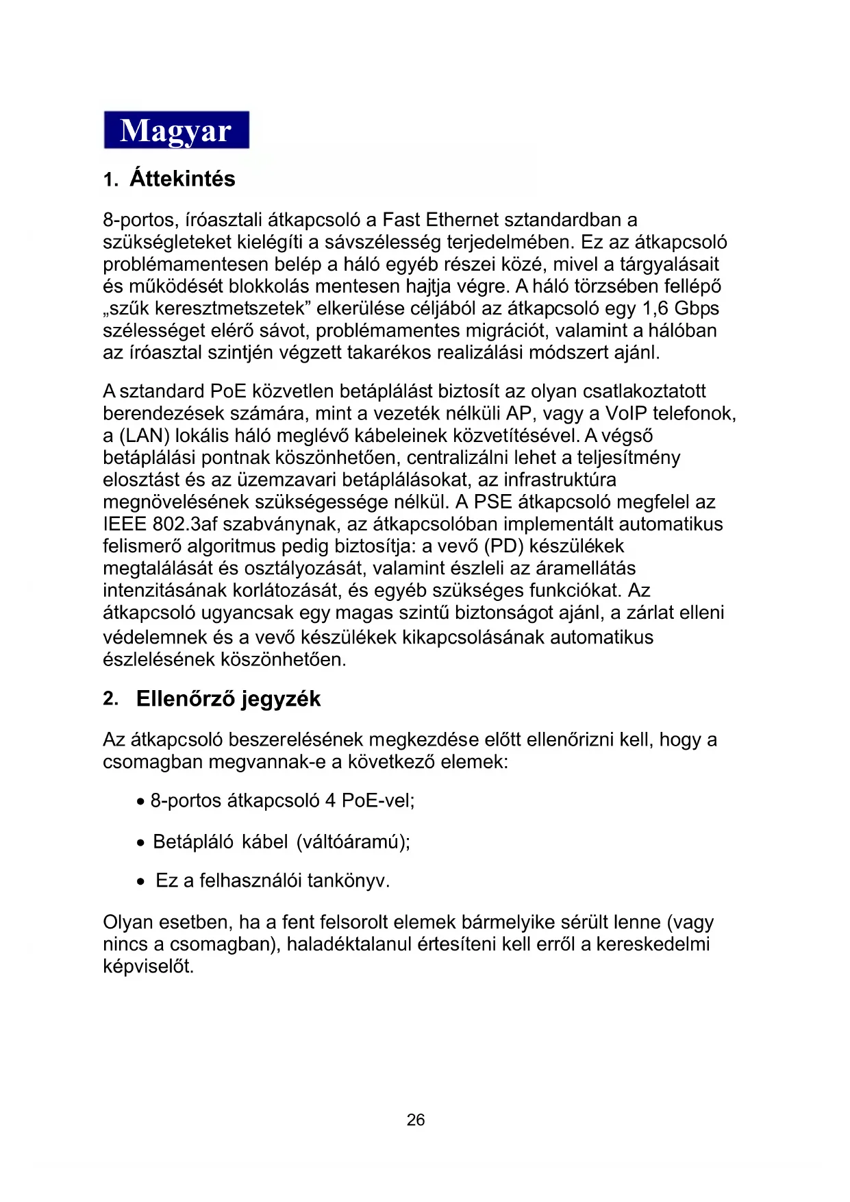 - Hálózati interfejsz: 8 db RJ-45 port 10/100 Mbps;
