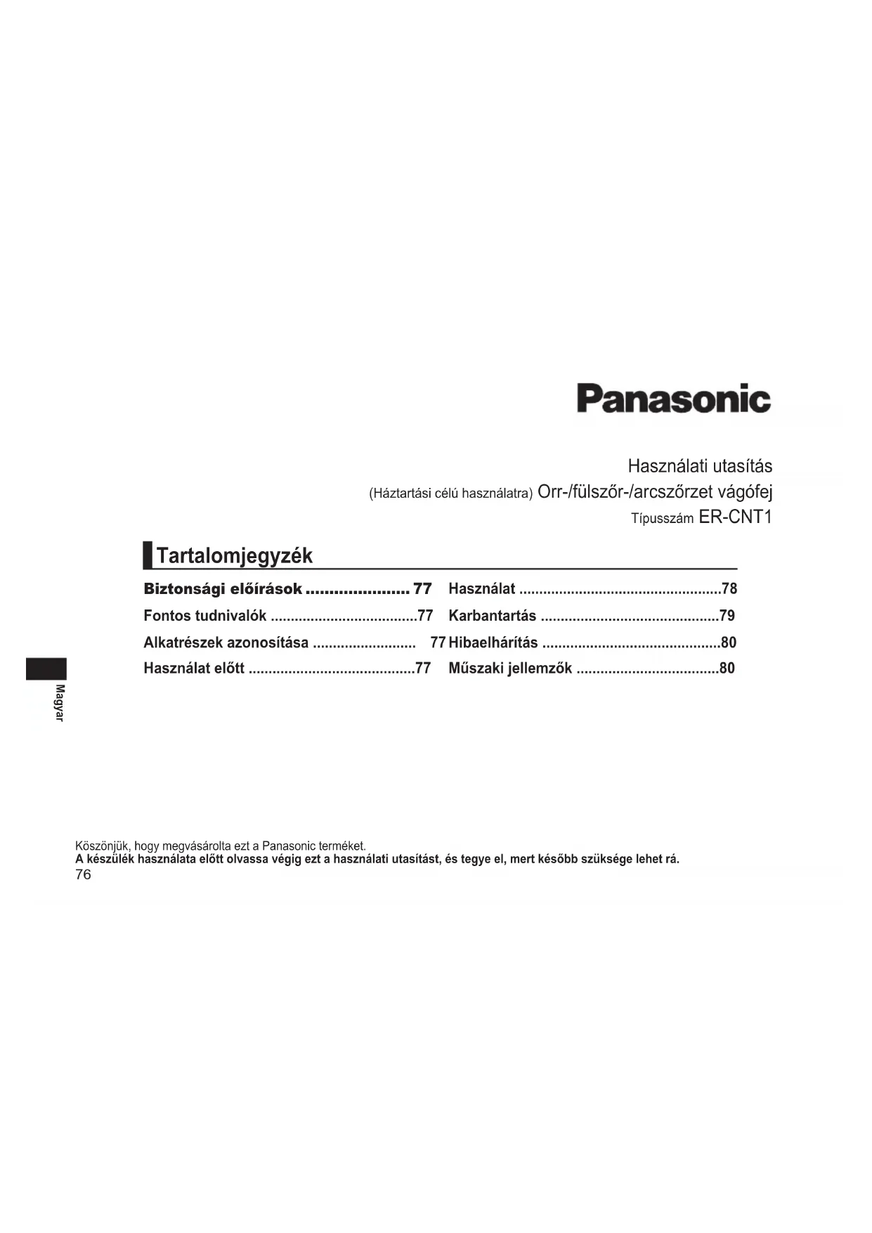 HASZNÁLATI ÚTMUTATÓ ERCNT1 PANASONIC