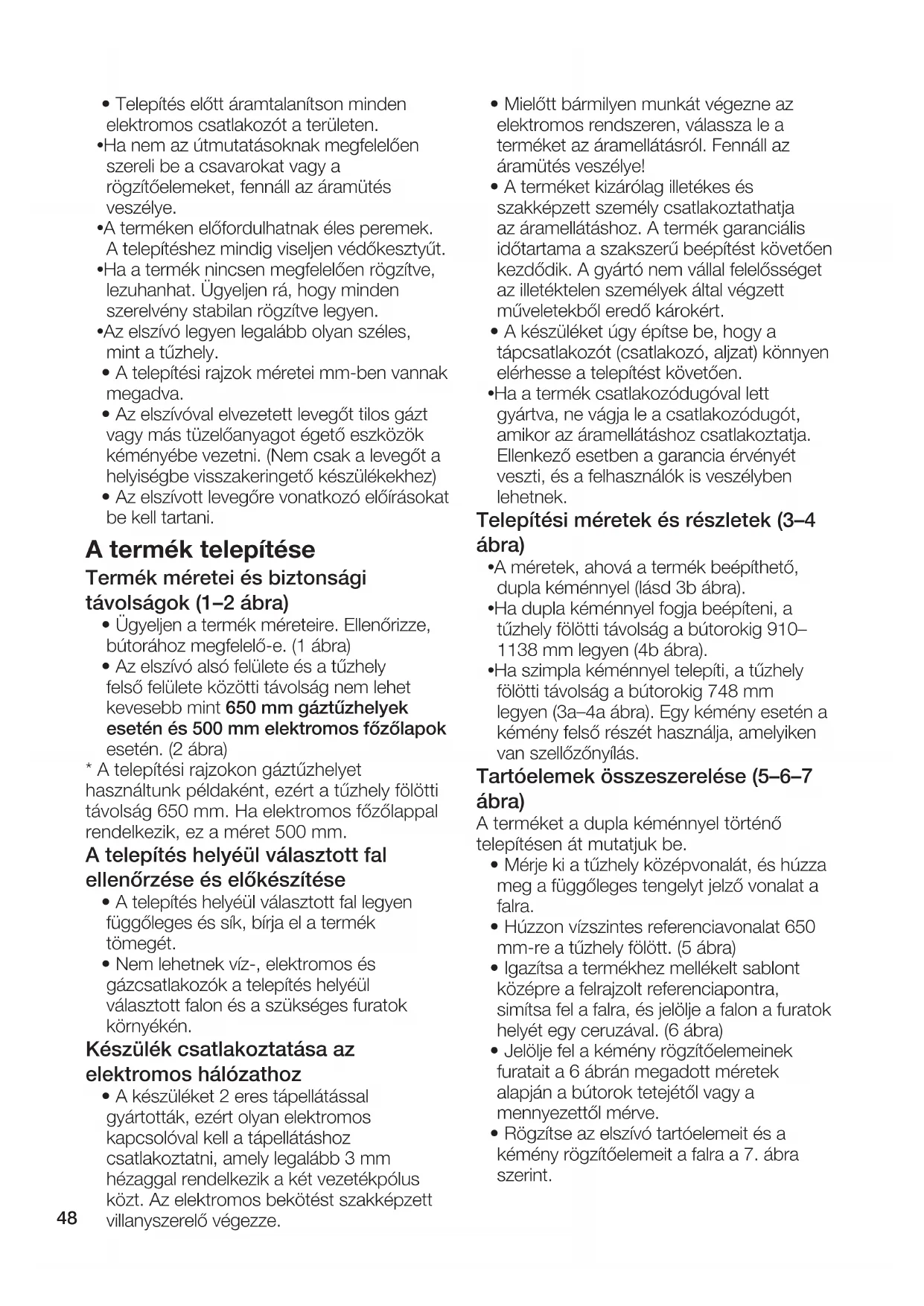 -Az elszivo legyen legalabbb oylan szeles, minta tuzhely. - A telepítési rajzok méreiei mm-ben vannak megadva.