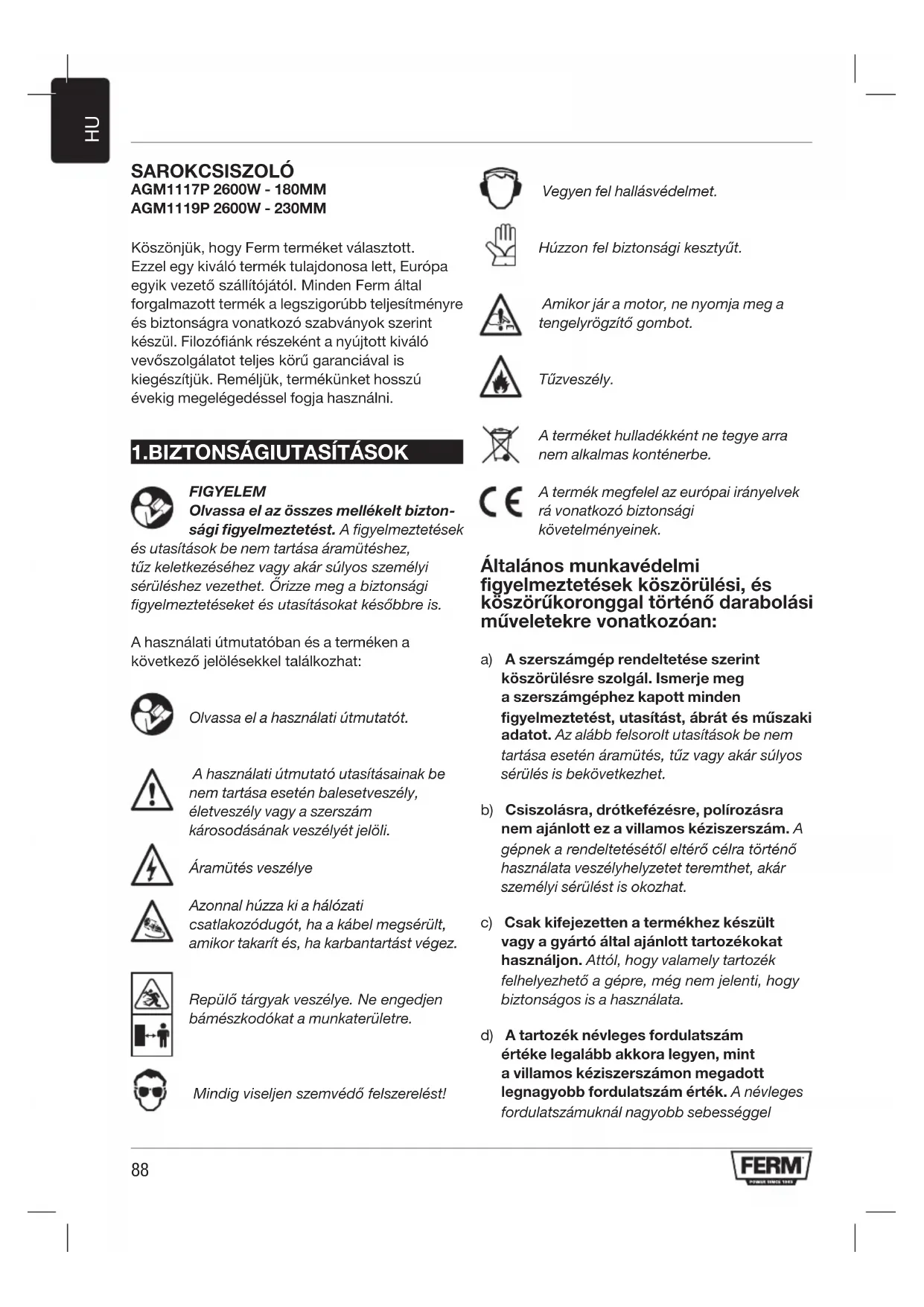 HASZNÁLATI ÚTMUTATÓ AGM1117P Ferm