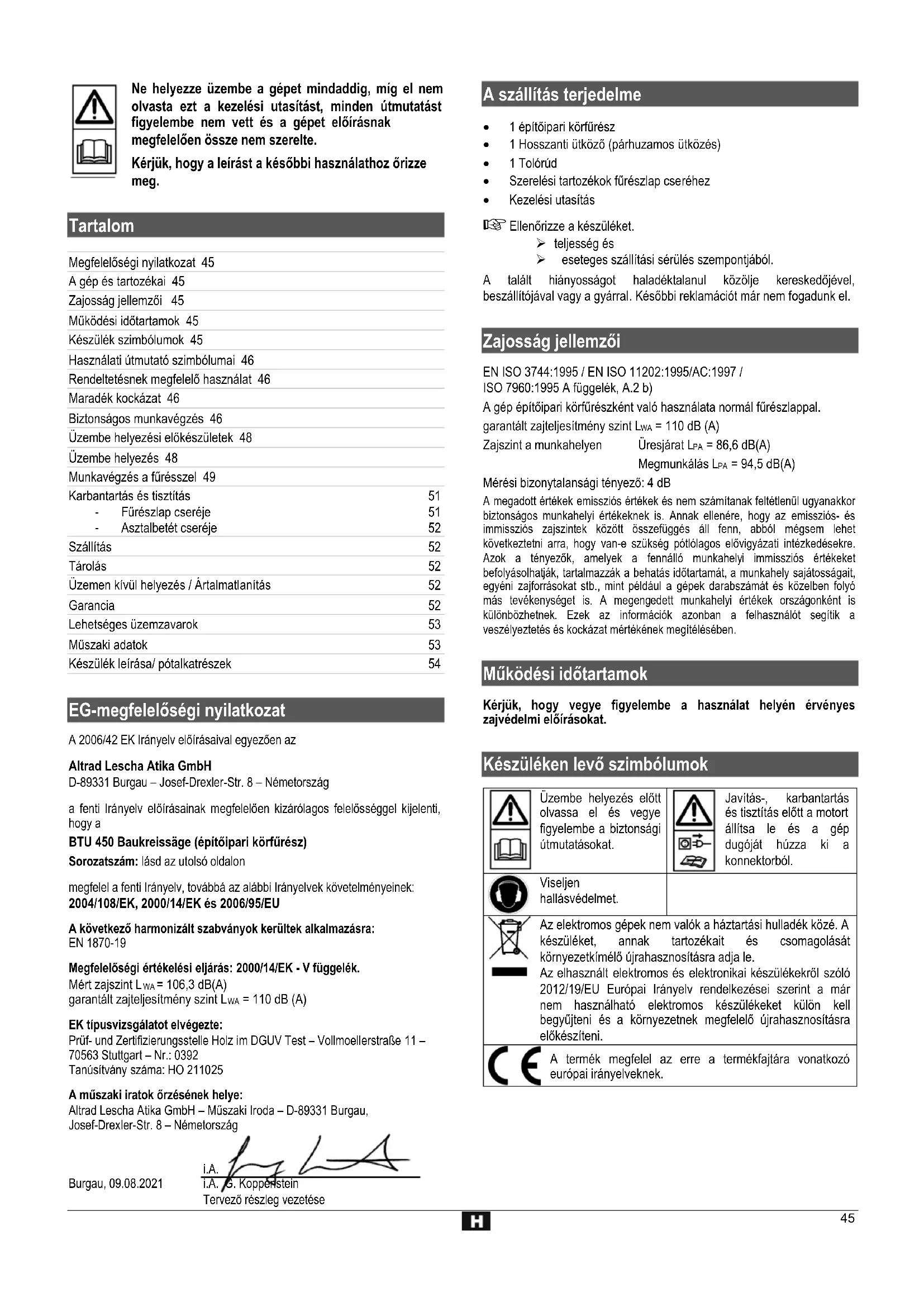 BTU 450 - Fűrész ATIKA - Ingyenes használati útmutató