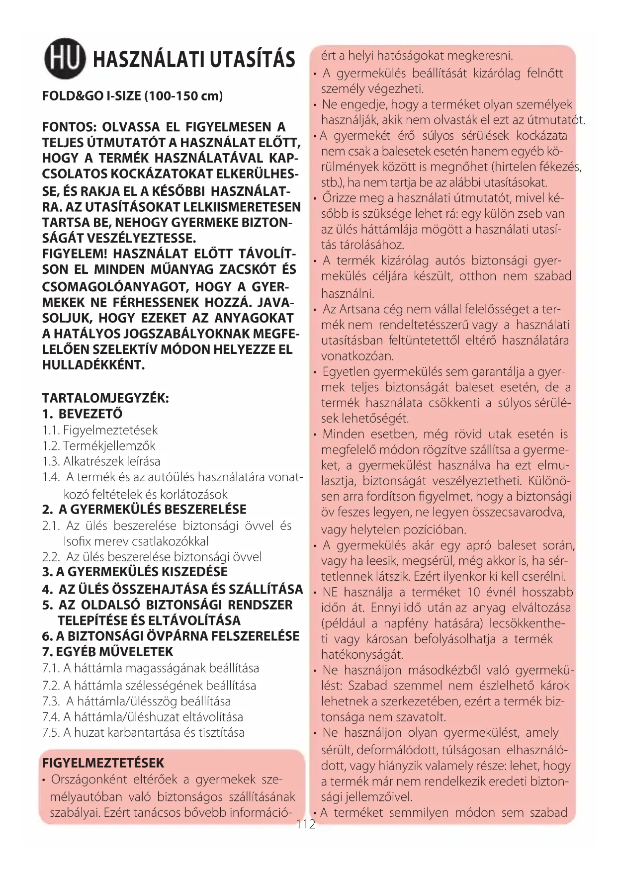 - Egyetlen gyermekülés sem garantálja a gyer- mek teljes biztonságát baleset esetén, de a termék használata csökkenti a súlyos sérülé- sek lehetőségét.