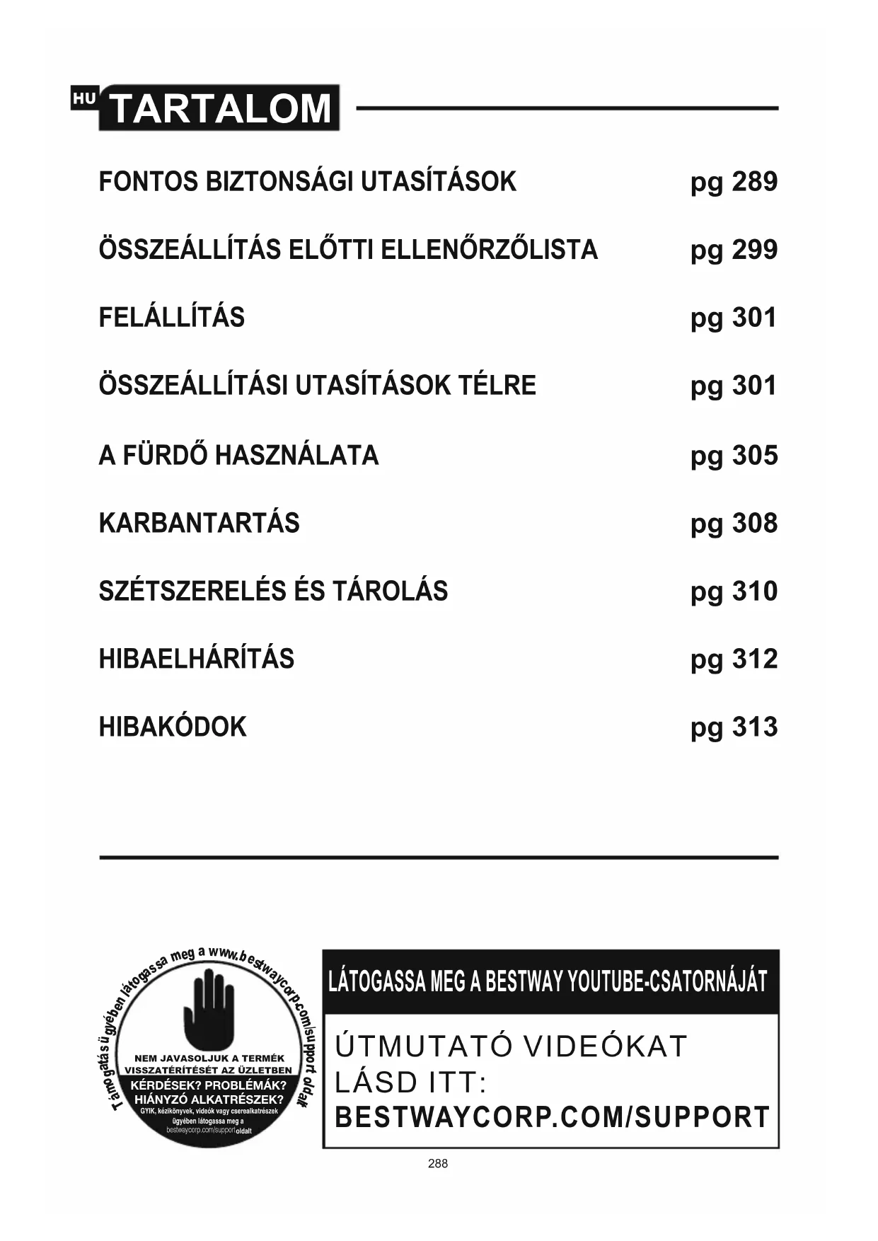 NEM JAVASOLJUK A TERMÉKVISSZATÉRÍTÉSÉT AZ ÜZLETBENKÉRDÉSEK? PROBLÉMÁK?HIÁNYZÓ ALKATRÉSZEK?GYIK, kézikönyvek, videók vagy cserealkatrészekügyében látogassa meg abestwaycorp.com/support oldalt