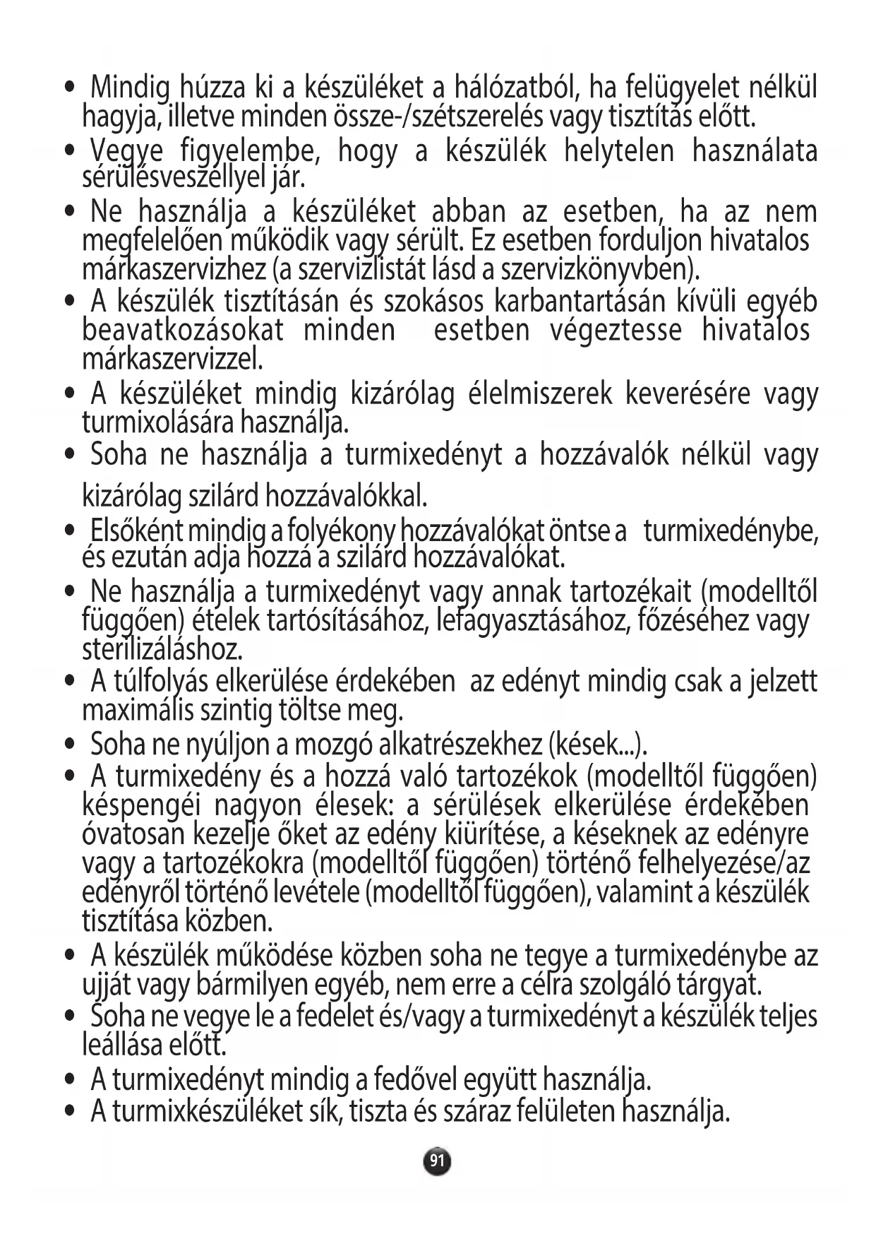 - A készüléket mindig kizárólag élelmiszerek keverésére vagy turmixolására használja.