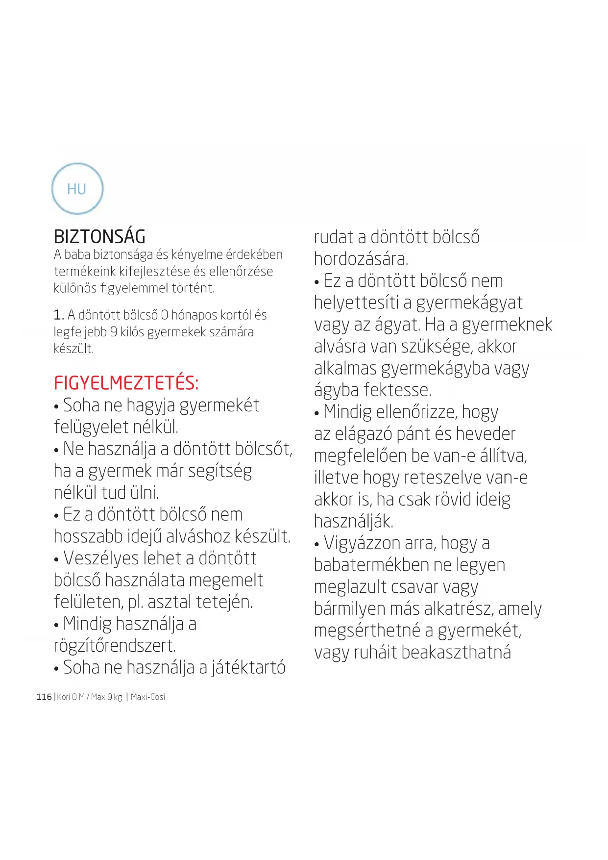 Maxi-Cosi BIZTONSÁG A baba biztonsága és kényelme érdekében termékeink kifejlesztése és ellenőrzése különös figyelemmel történt.