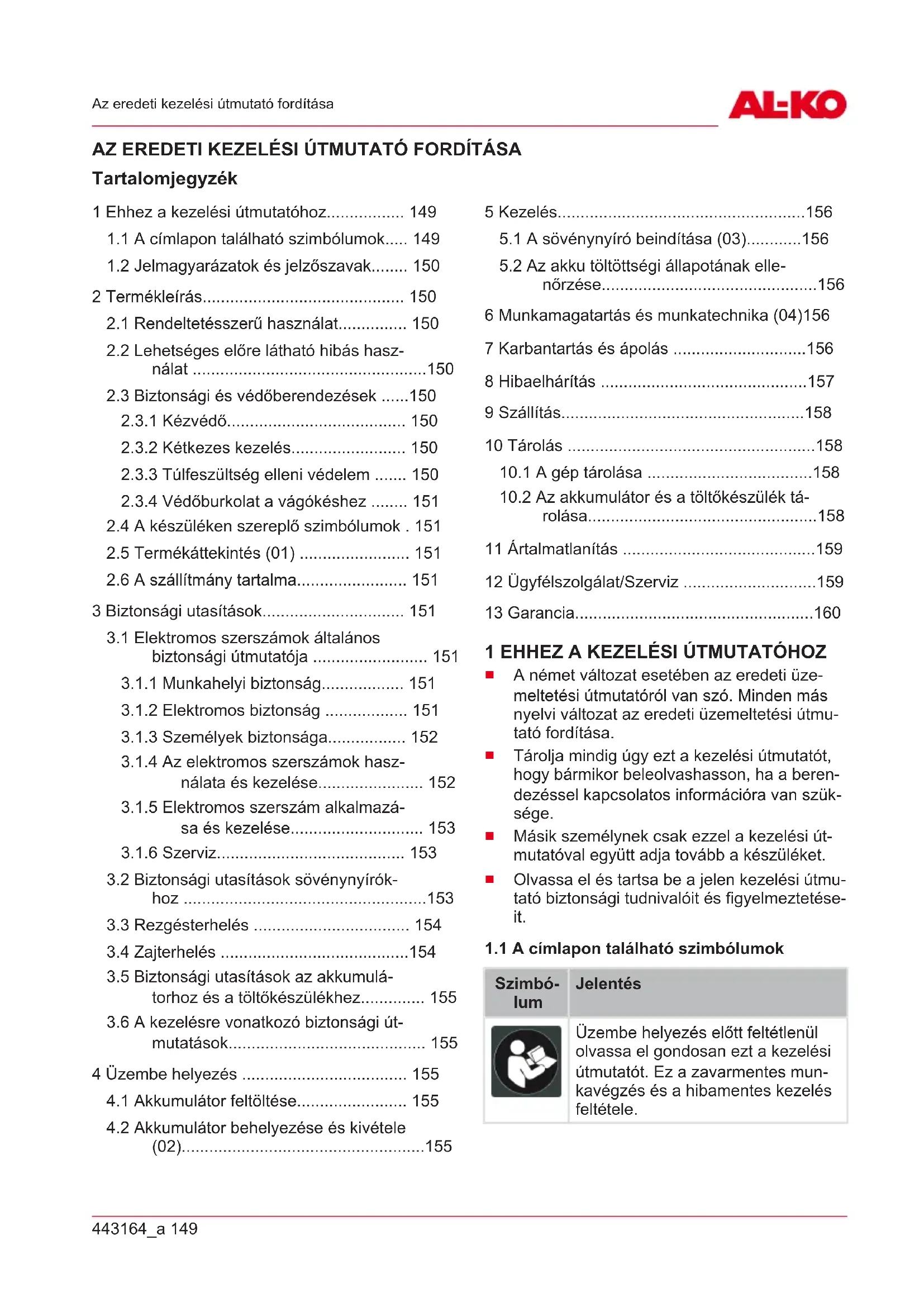 1.1 A címlapon található szimbólumok..... 149