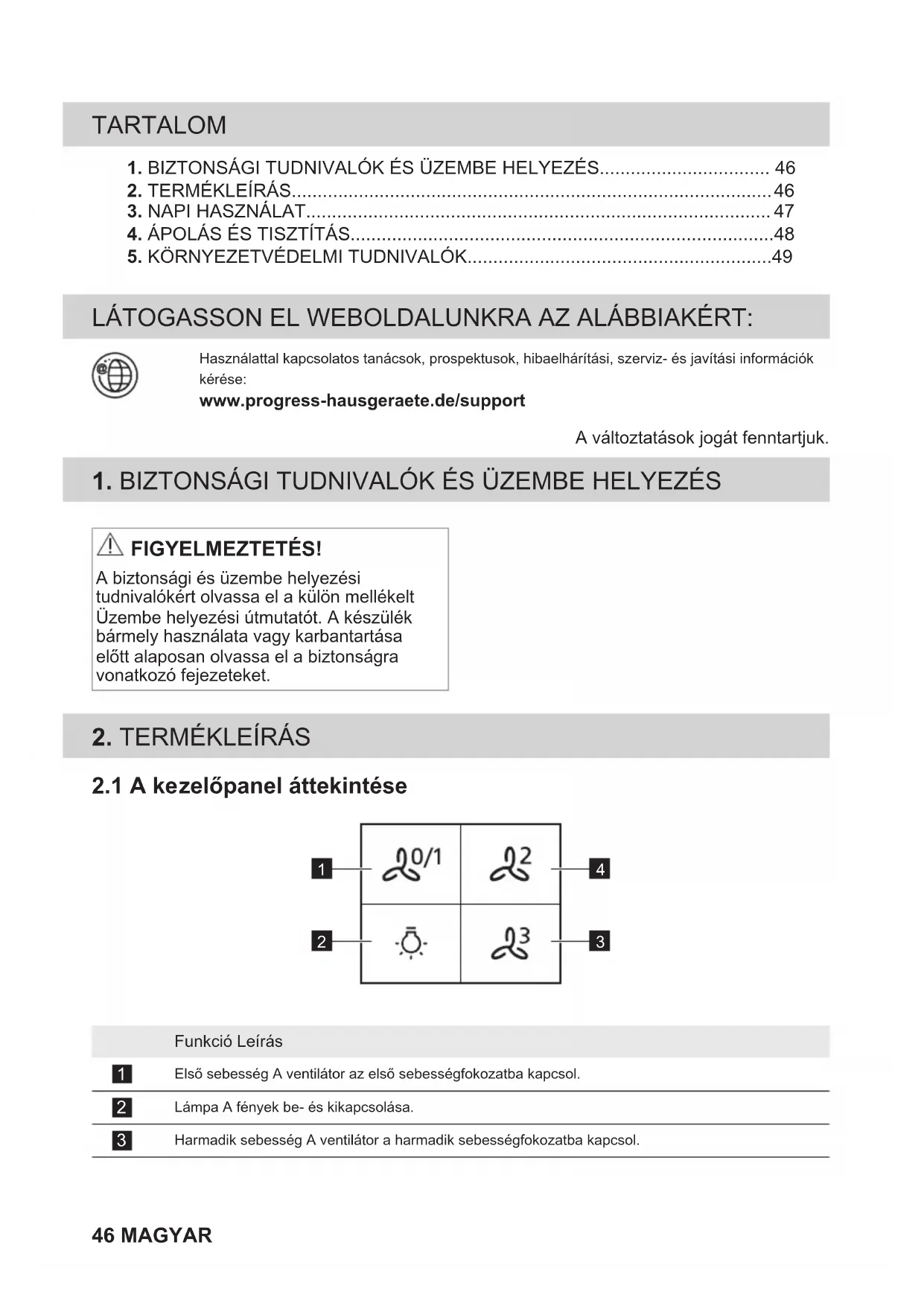 1. BIZTONSÁGITUDNIVALOK ES ÜZEMBE HELYEZÉS