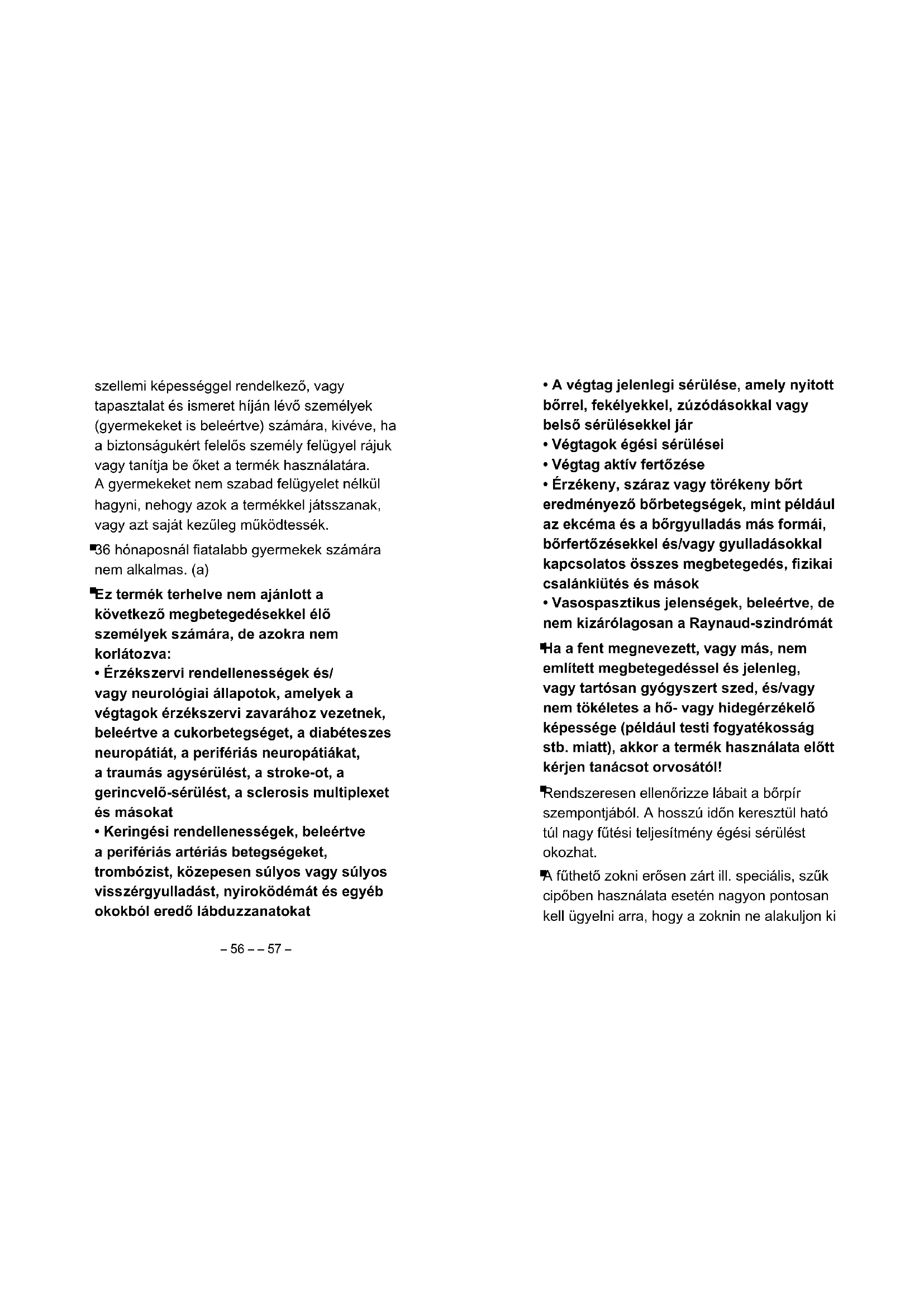 A fűthető zokni erősen zárt ill. speciális, szűk cipőben használata esetén nagyon pontosan kell ügyelni arra, hogy a zoknin ne alakuljon ki szellemi képességgel rendelkező, vagy tapasztalat és ismeret híján lévő személyek (gyermekeket is beleértve) számára, kivéve, ha a biztonságukért felelős személy felügyel rájuk vagy tanítja be őket a termék használatára. A gyermekeket nem szabad felügyelet nélkül hagyni, nehogy azok a termékkel játsszanak, vagy azt saját kezűleg működtessék.