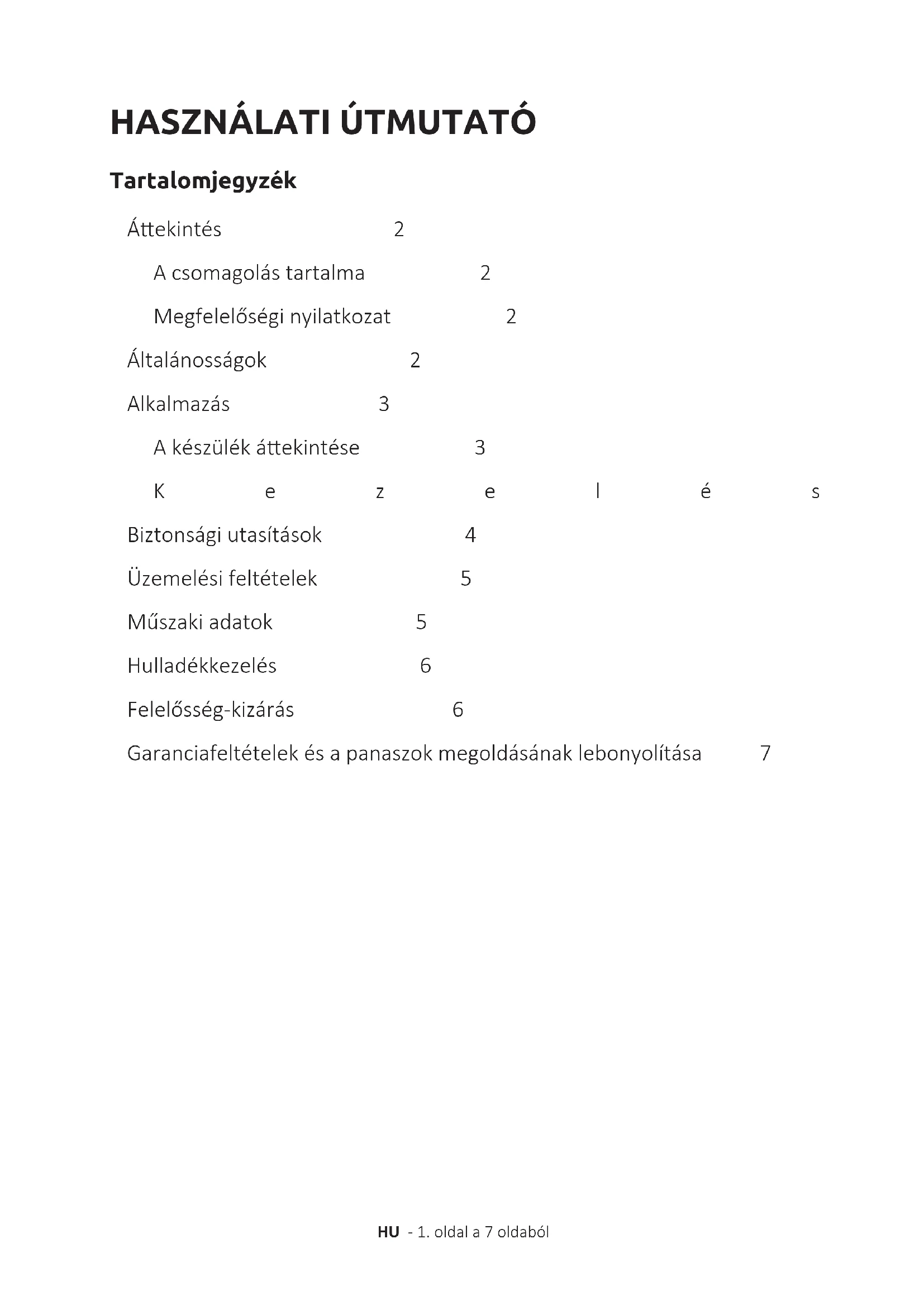 HU üzemeltetésiutasítások Oldal 1-