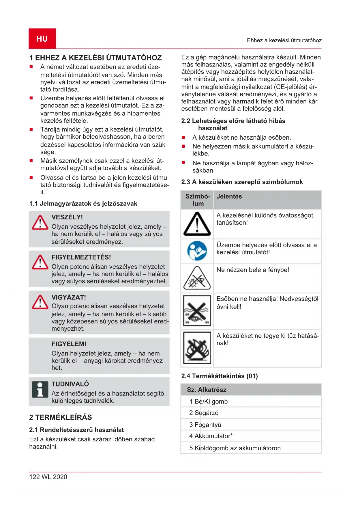 2.1 Rendeltetesszeru hasznalat 122