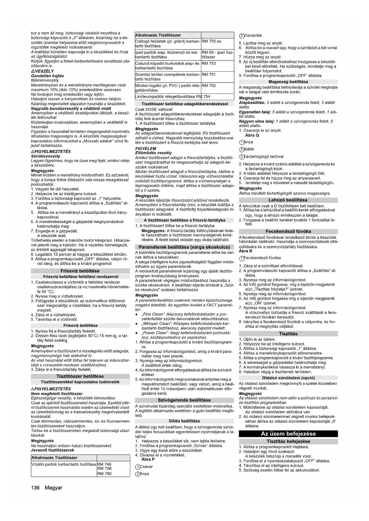 Garancia Minden országban az illetékes értékesítő társaságunk által megadott garanciális feltételek vannak érvényben. A készüléknél felmerülő esetleges zavarokat a garanci- aidőn belül díjmentesen orvosoljuk, amennyiben anyag- , illetve gyártási hibáról van szó. Garanciális esetben kérjük, a számlával együtt forduljon kereskedőjéhez vagy a legközelebbi, arra jogosult ügyfélszolgálati iro- dához. (A címet lásd a hátoldalon) Műszaki adatok Nem megfelelő a tisztítási eredmény 1. Állítsa be a tisztítási feladathoz illő tisztítási programot.