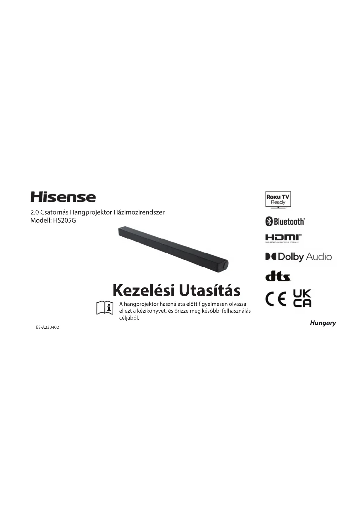 HASZNÁLATI ÚTMUTATÓ HS205G HISENSE