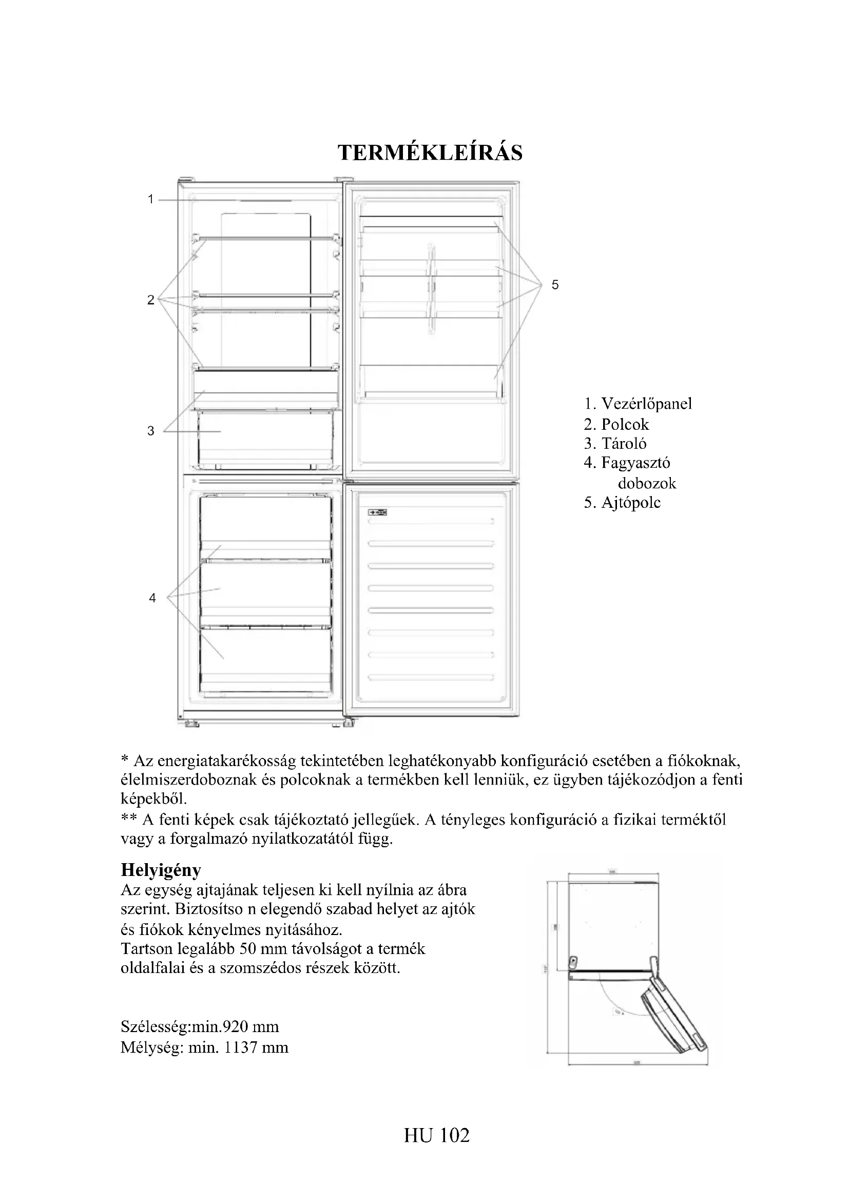 Az energiatakarékosság tekintétében leghatékonyabb konfigurácio esetében a fiokoknak, éelmiszerdoboznak és polcoknak a termékben kell lenniük, ez ügyben tajekozódjon a fenti képekból.