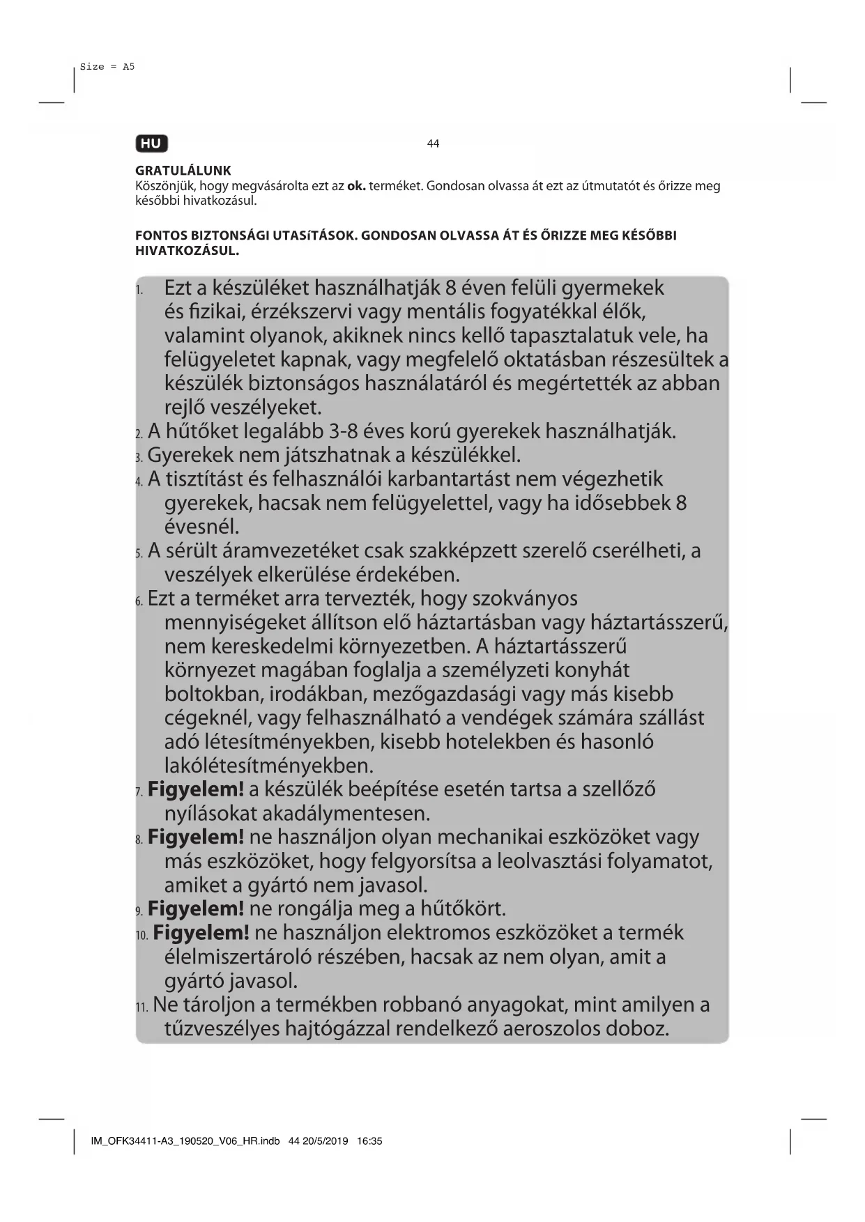 tűzveszélyes hajtógázzal rendelkező aeroszolos doboz. IM_OFK34411-A3_190520_V06_HR.indb 44 20/5/2019 16:3545