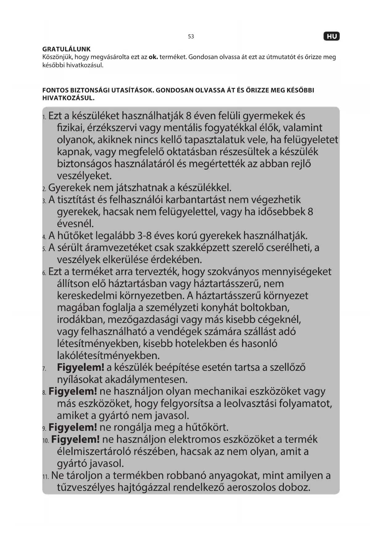 GRATULÁLUNK Köszönjük, hogy megvásárolta ezt az ok. terméket. Gondosan olvassa át ezt az útmutatót és őrizze meg későbbi hivatkozásul. FONTOS BIZTONSÁGI UTASÍTÁSOK. GONDOSAN OLVASSA ÁT ÉS ŐRIZZE MEG KÉSŐBBI HIVATKOZÁSUL.