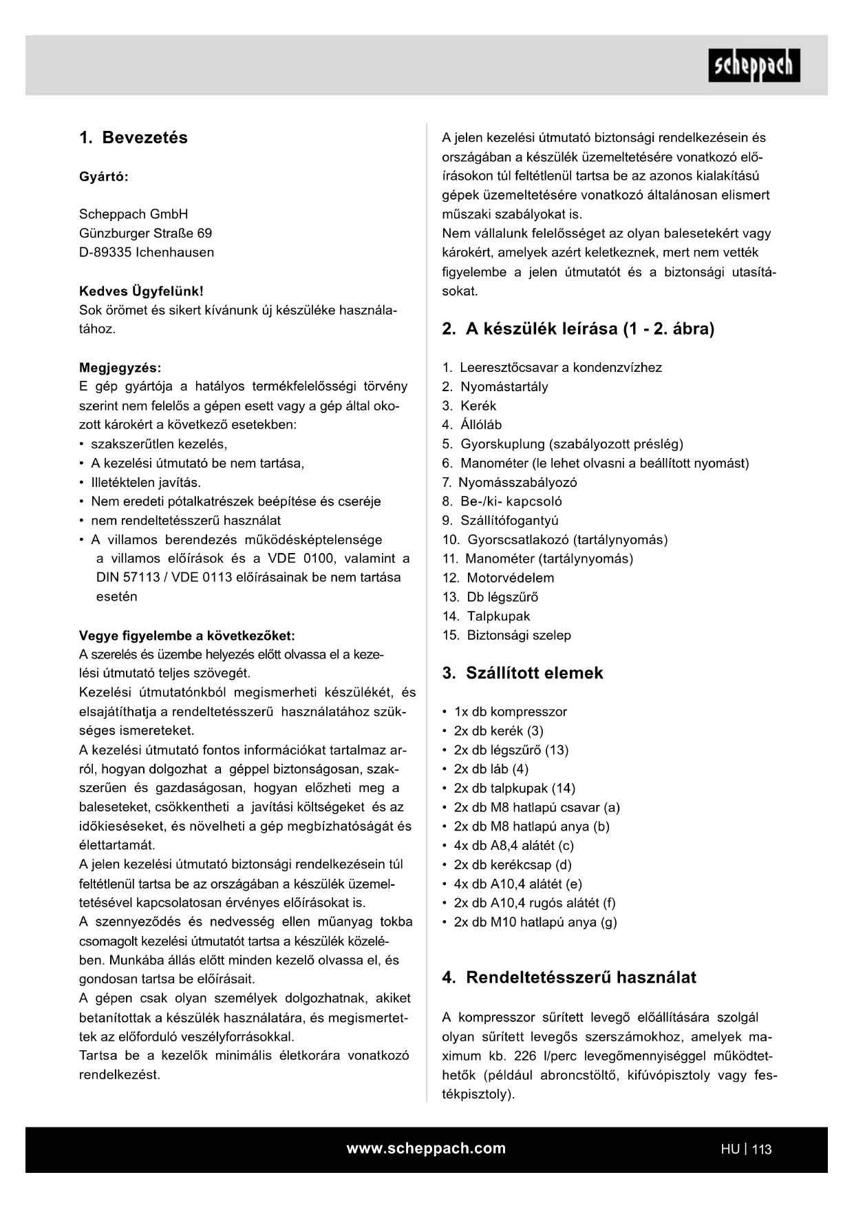 Töltse le az útmutatót a következőhöz Kompresszor PDF formátumban ingyenesen! Találja meg kézikönyvét HC104DC - SCHEPPACH és vegye vissza elektronikus eszközét a kezébe. Ezen az oldalon közzé van téve az eszköze használatához szükséges összes dokumentum. HC104DC márka SCHEPPACH.