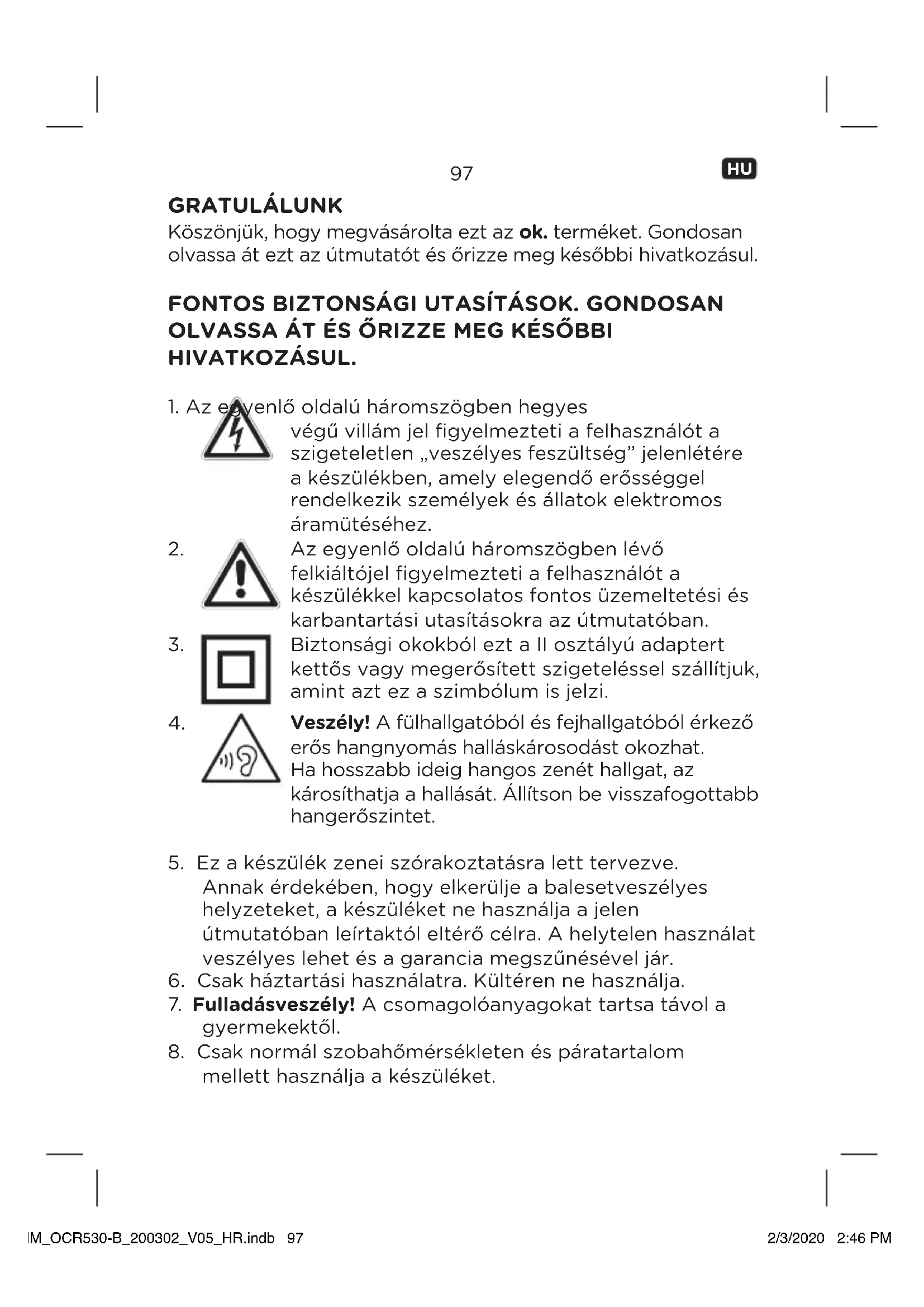 mellett használja a készüléket. IM_OCR530-B_200302_V05_HR.indb 97IM_OCR530-B_200302_V05_HR.indb 97 2/3/2020 2:46 PM2/3/2020 2:46 PM98 Size - A6