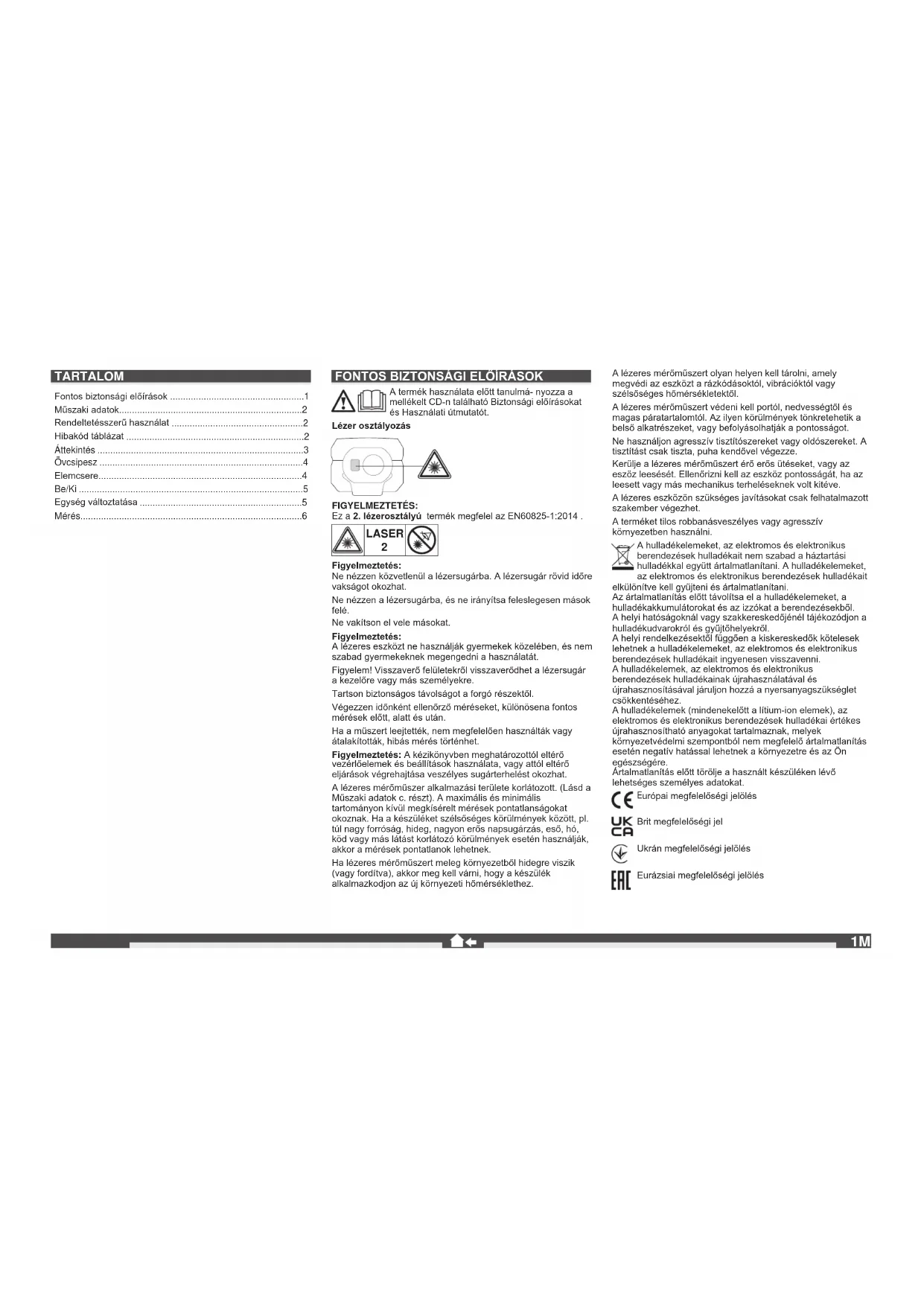 urópai megfelelőségi jelölés Brit megfelelőségi jel Ukrán megfelelőségi jelölés Eurázsiai megfelelőségi jelölés TARTALOM Fontos biztonsági előírások ....................................................1 Műszaki adatok.......................................................................2 Rendeltetésszerű használat